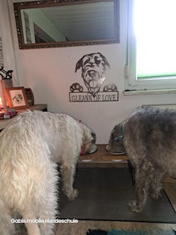 Und Benny frisst und trinkt gern daraus und er kann nix mehr umwerfen oder aus kippen