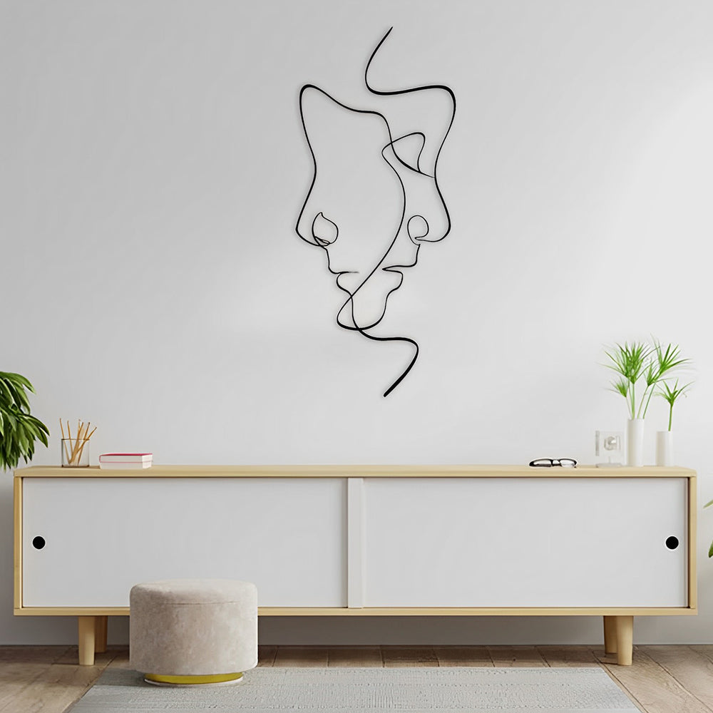Abstrakt Paar Gesicht Linien Metallwandkunst