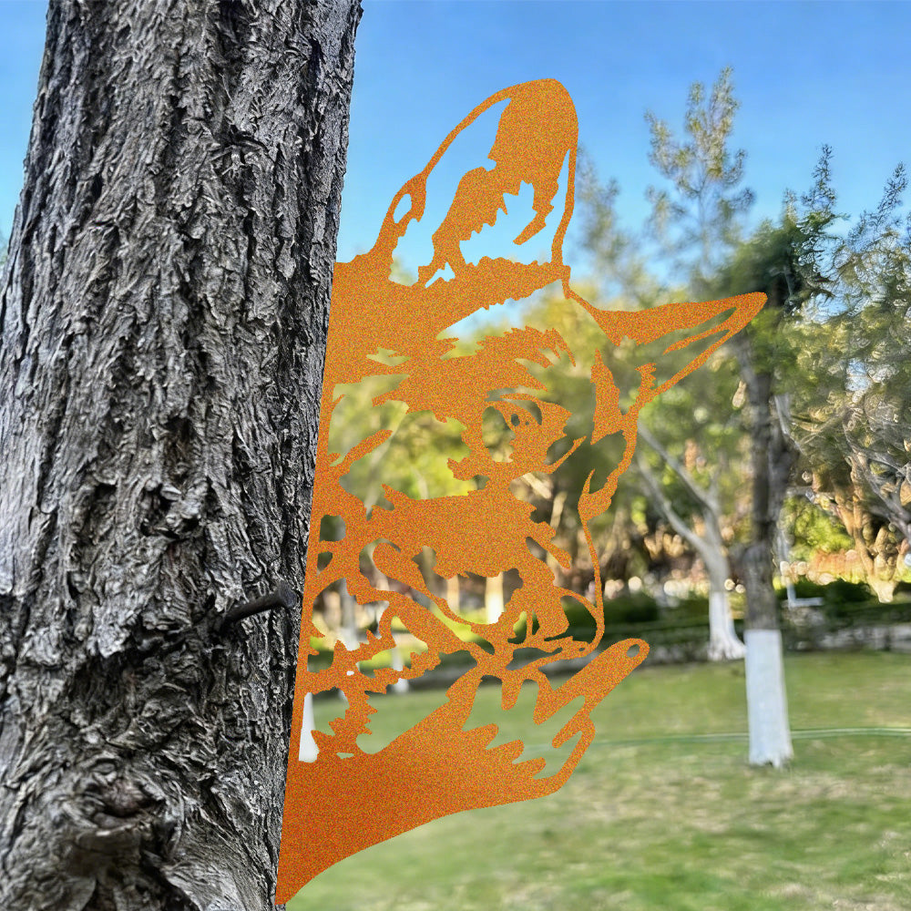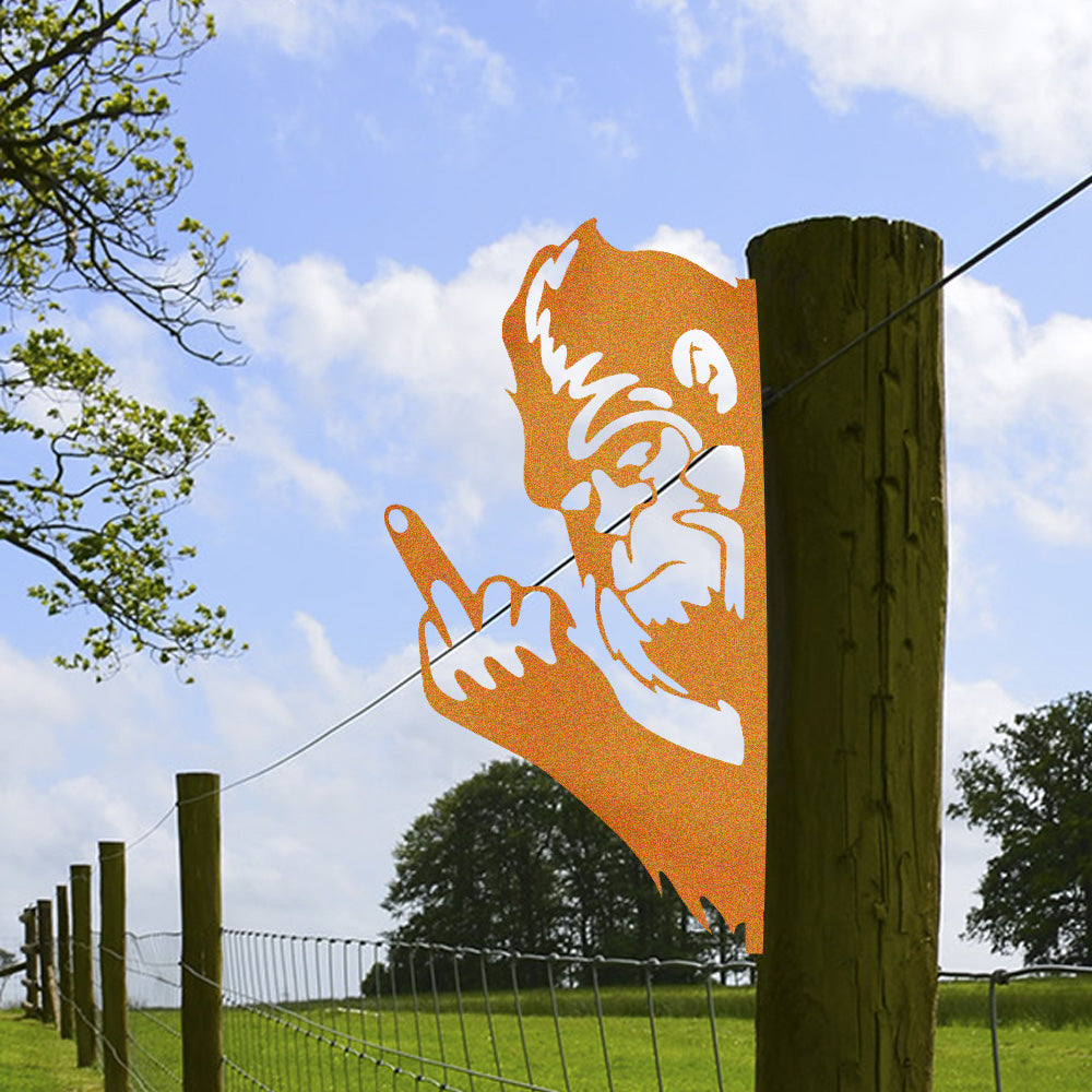 Lustiger Fuchs Metallschild mit Stinkefinger – Guckendes Tier Gartendekoration