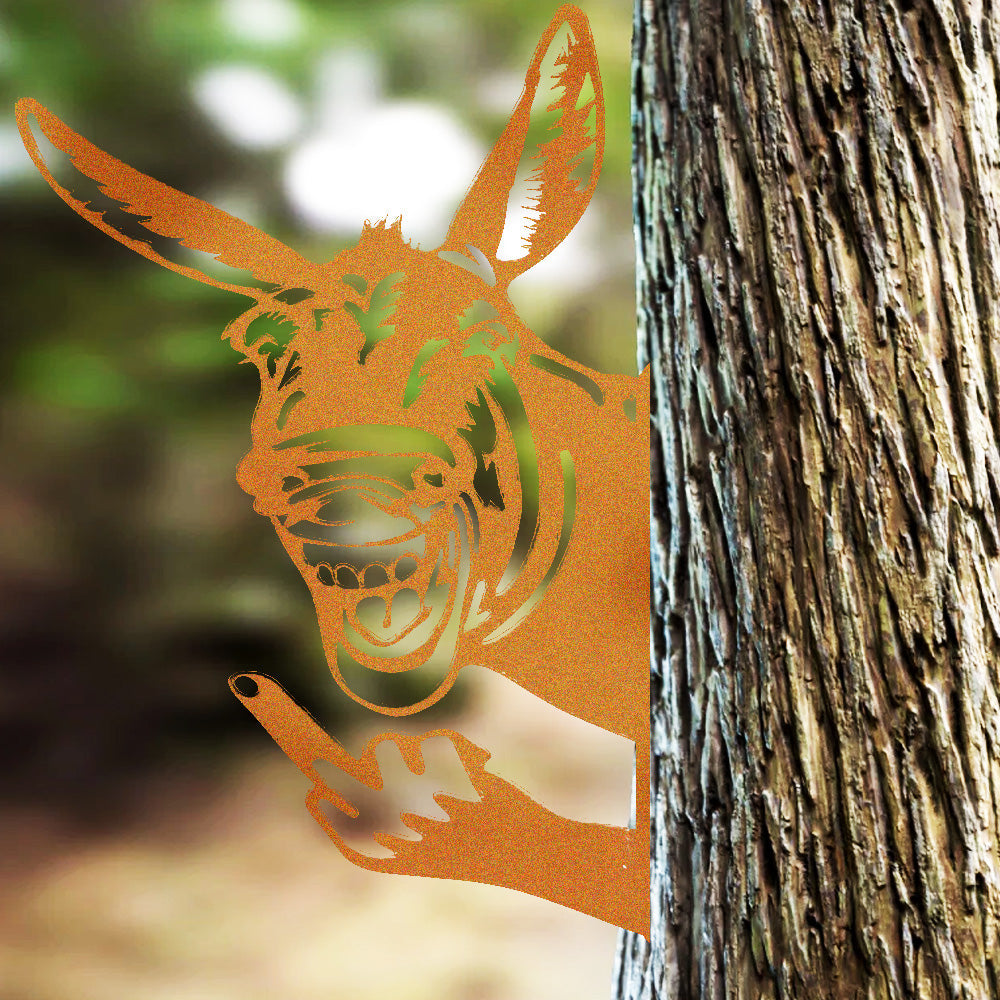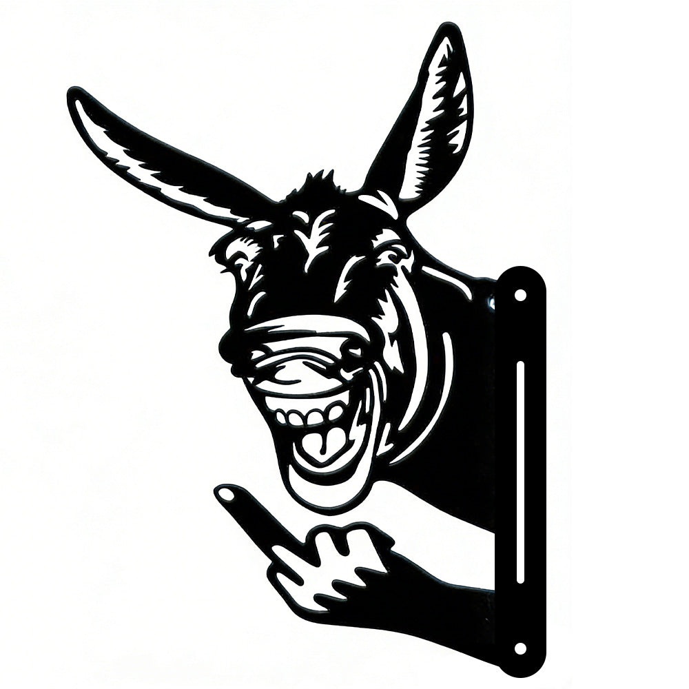 Lustiger Esel Metallschild mit Stinkefinger – Guckendes Tier Gartendekoration