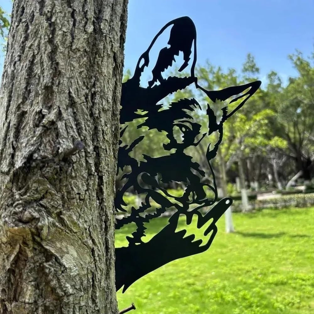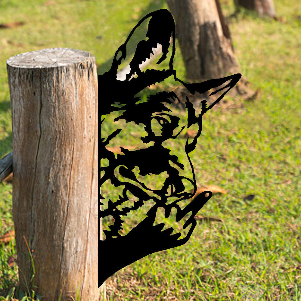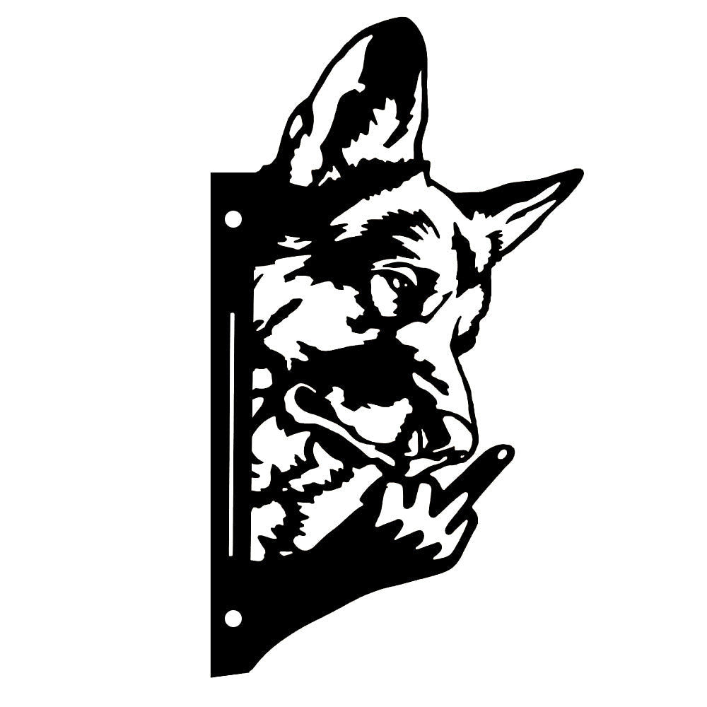 Lustiger Deutscher Schäferhund Metallschild mit Stinkefinger – Guckendes Tier Gartendekoration