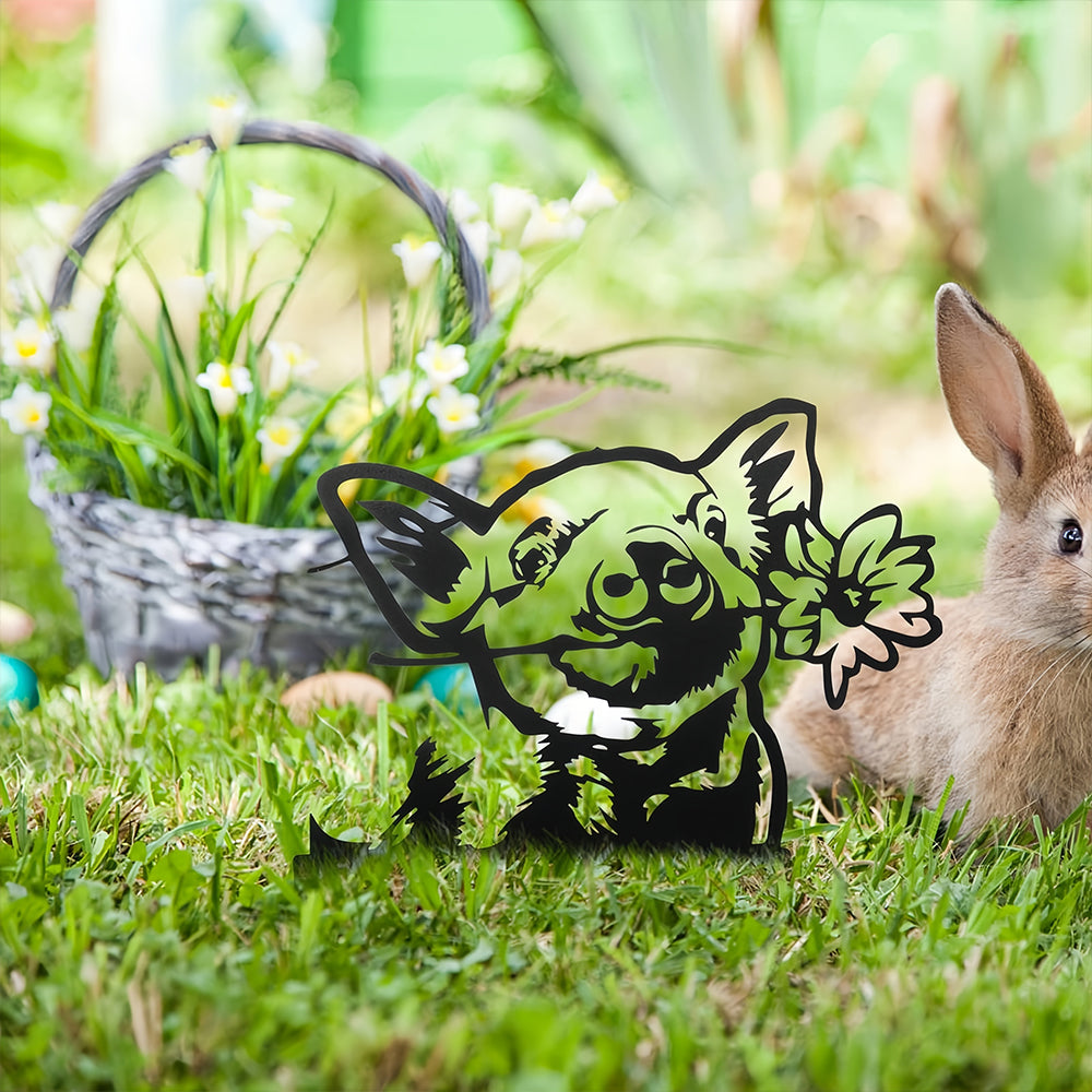 Hochwertige Metallkunst mit Tiersilhouette, die Ihrem Garten ganz einfach eine fröhliche Atmosphäre verleiht.