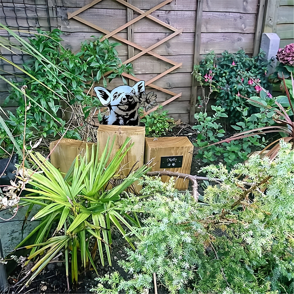 Ferkel und Blumen Bauernhof Guckendes Tier Outdoor Metall Garten Kunst