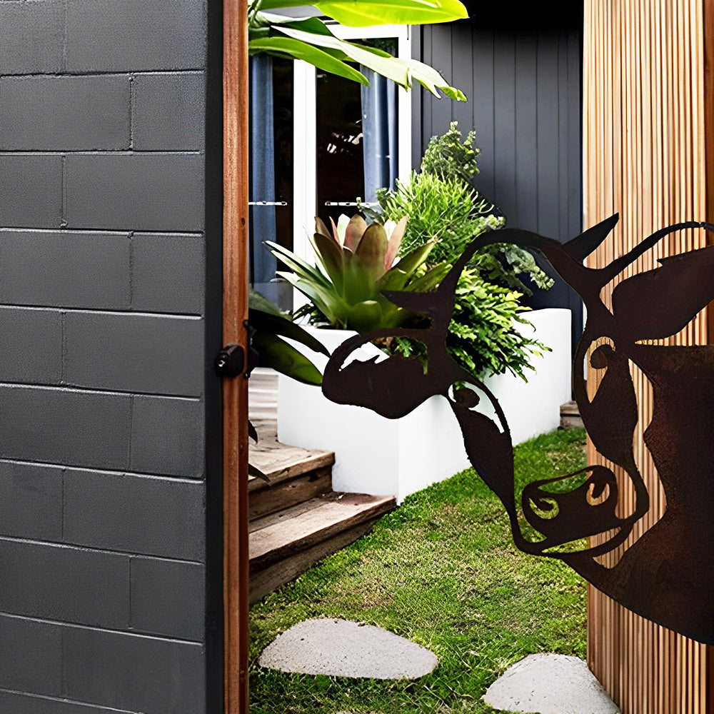 Hochwertige Metallkunst mit Tiersilhouette, die Ihrem Garten ganz einfach eine fröhliche Atmosphäre verleiht.