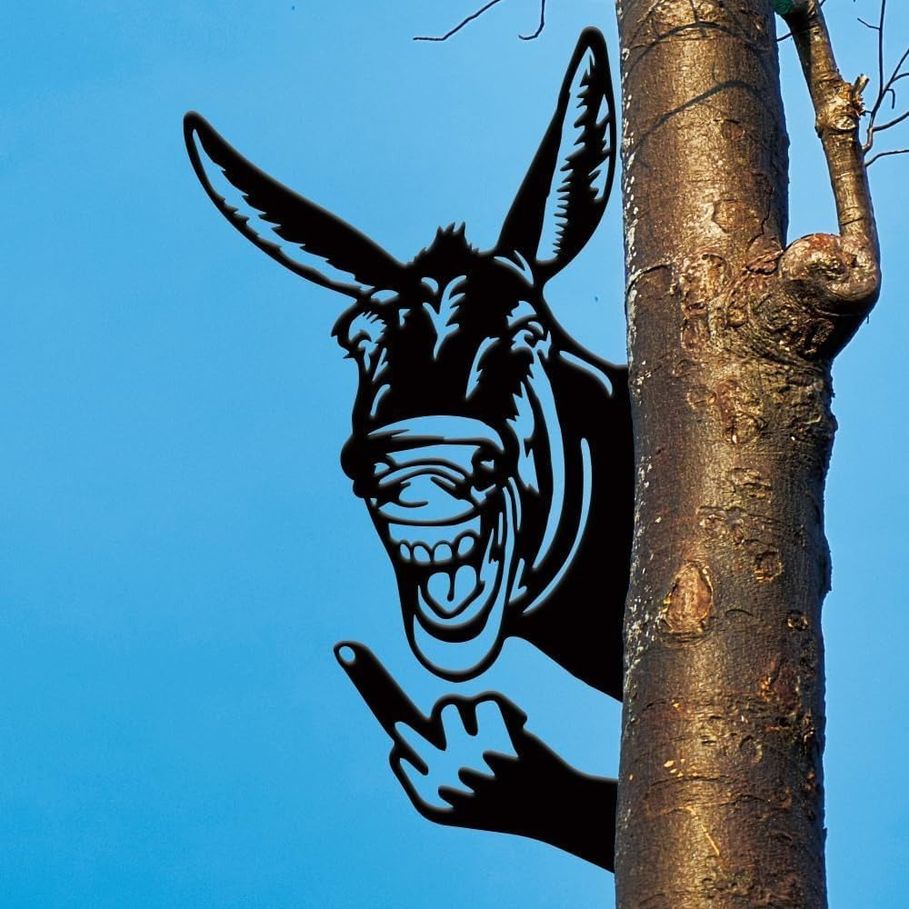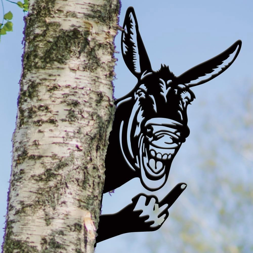 Lustige Mule Metallschild mit Stinkefinger – Guckendes Tier Gartendekoration