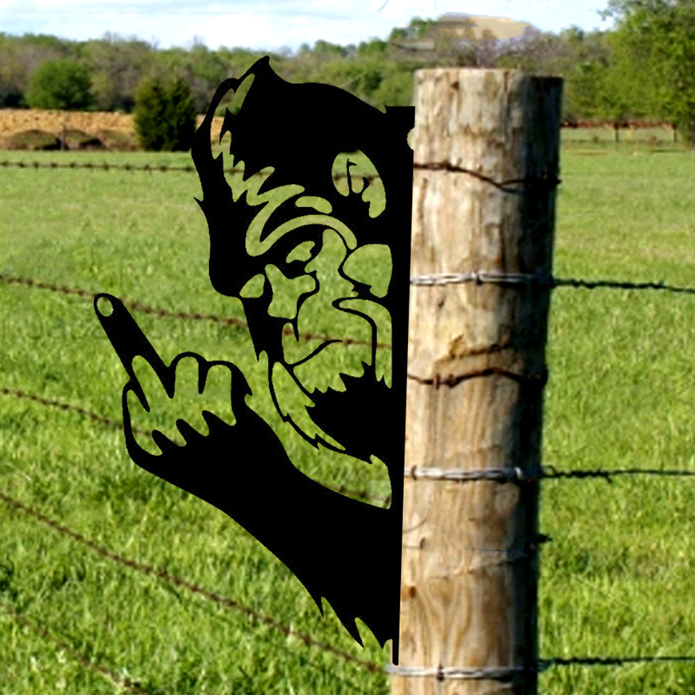 Lustiger Bigfoot Metallschild mit Stinkefinger – Guckendes Tier Gartendekoration