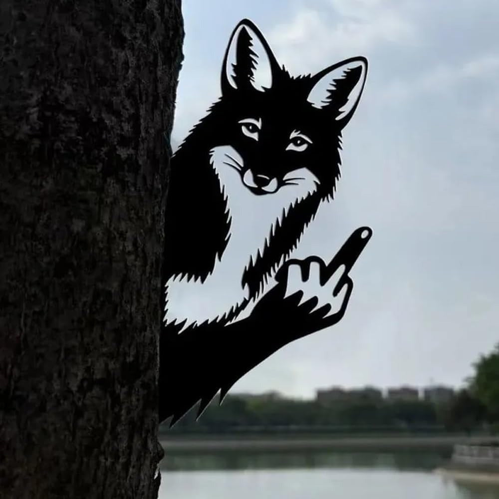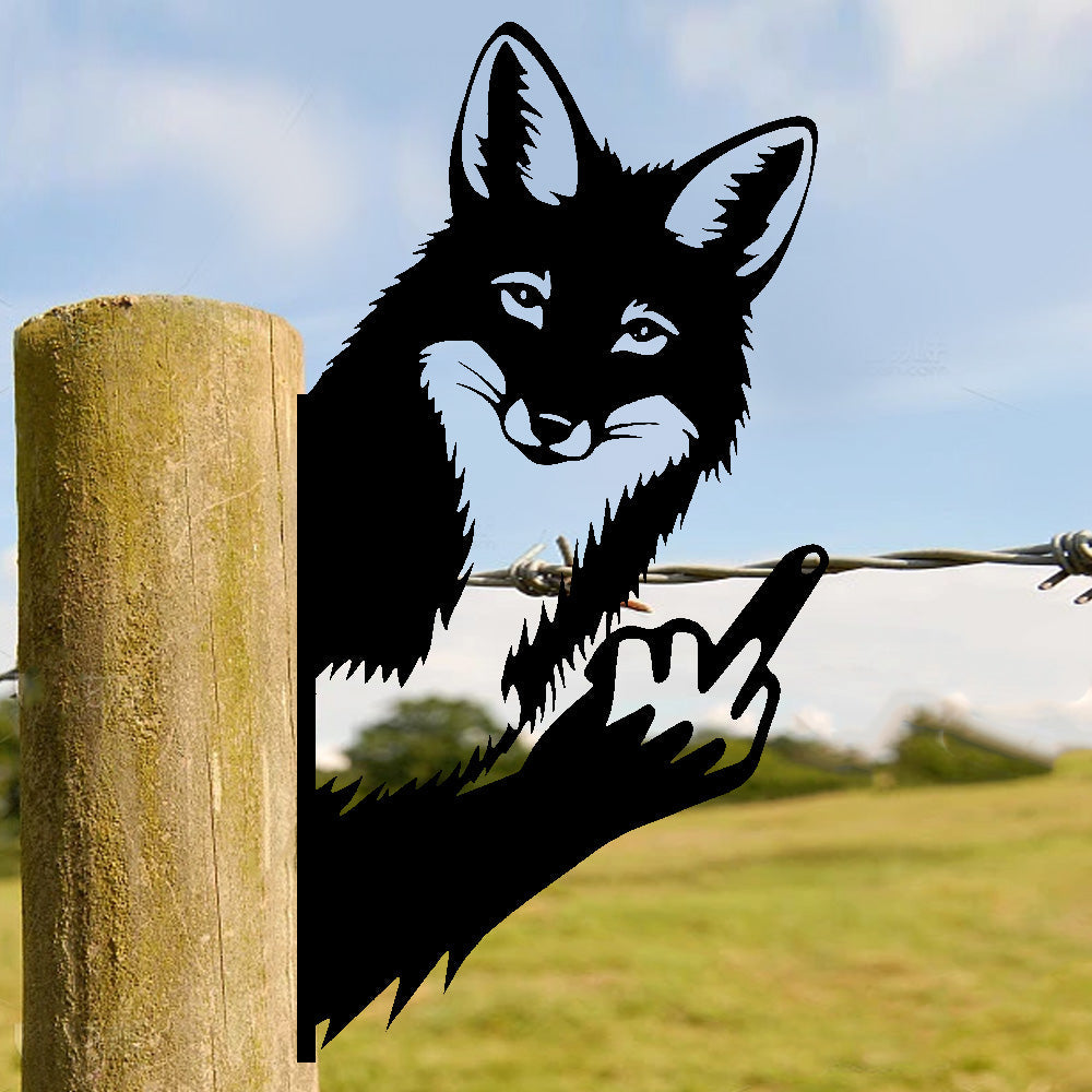 Lustiger Fuchs Metallschild mit Stinkefinger – Guckendes Tier Gartendekoration