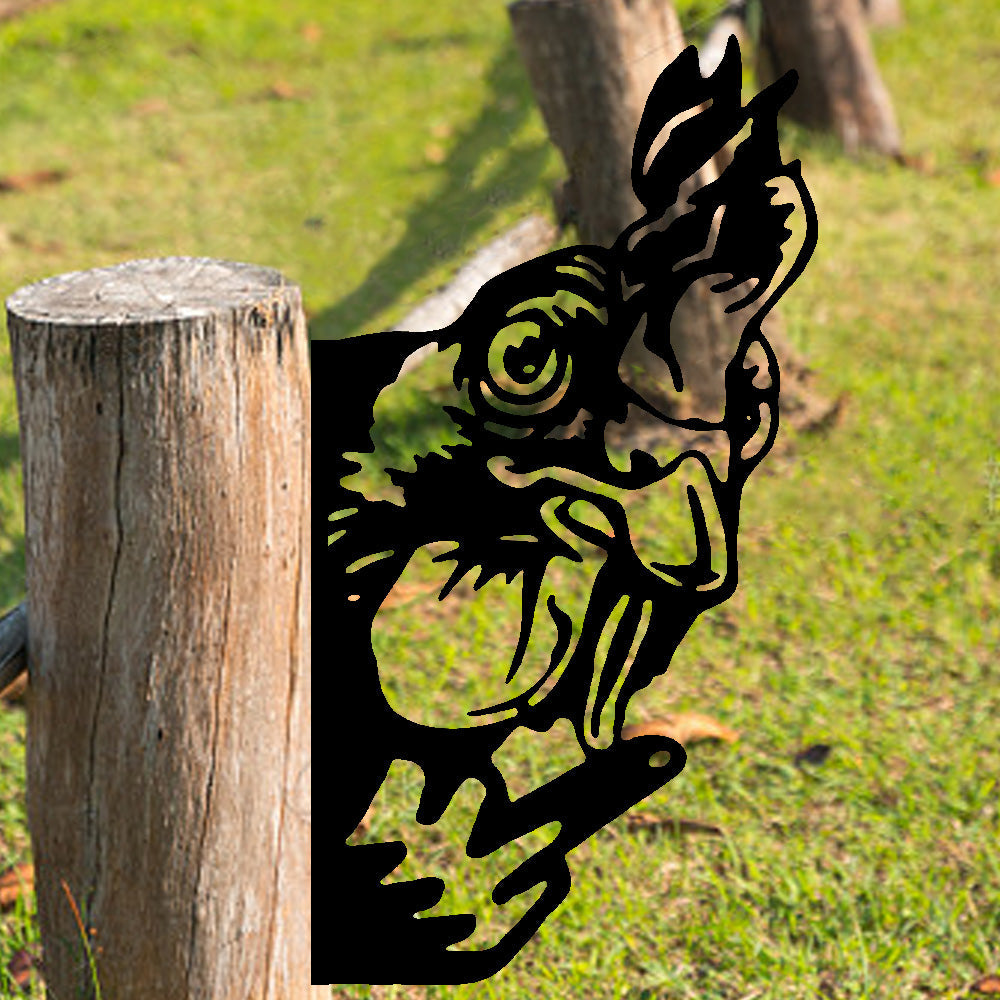 Lustiger Hahn Metallschild mit Stinkefinger – Guckendes Tier Gartendekoration