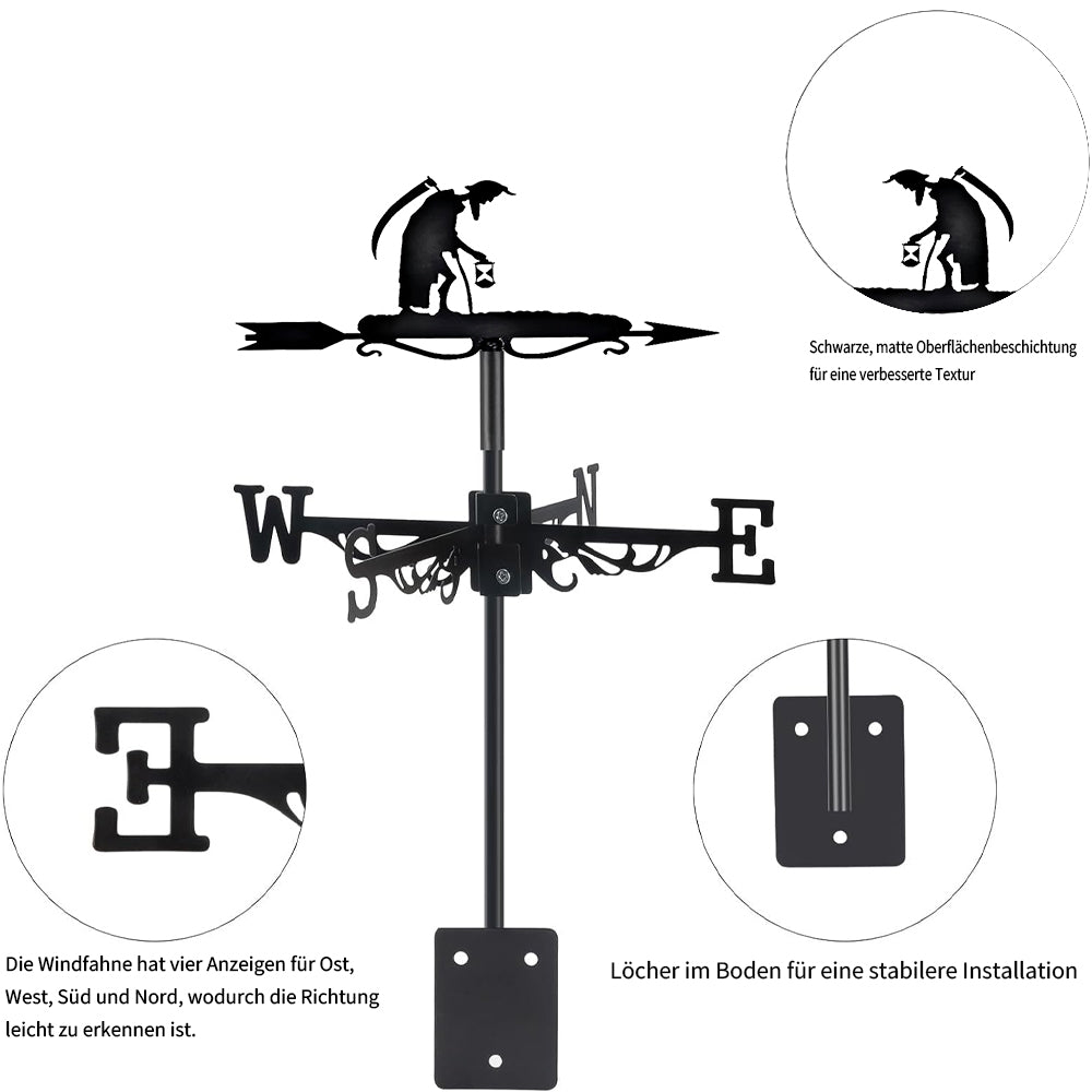 🌙Windrichtungsanzeiger: Unser einzigartiges Punktkontaktdesign sorgt dafür, dass sich unsere Windfahne leicht im Wind dreht. Der einzigartige Drehpunkt sorgt für eine reibungslose und störungsfreie Drehung. Zeigt die Richtung der Windgeschwindigkeit an.