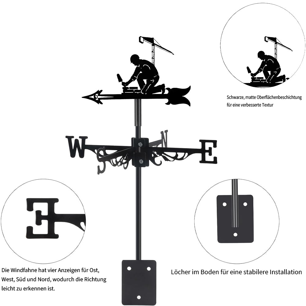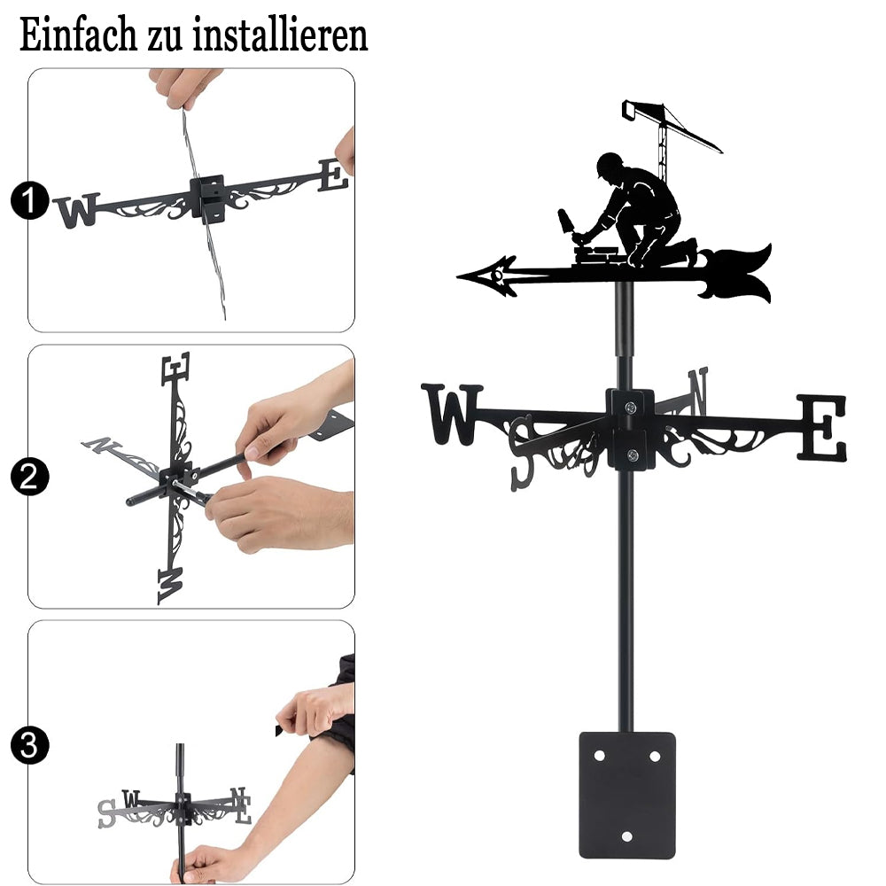 🌙Windrichtungsanzeiger: Unser einzigartiges Punktkontaktdesign sorgt dafür, dass sich unsere Windfahne leicht im Wind dreht. Der einzigartige Drehpunkt sorgt für eine reibungslose und störungsfreie Drehung. Zeigt die Richtung der Windgeschwindigkeit an.