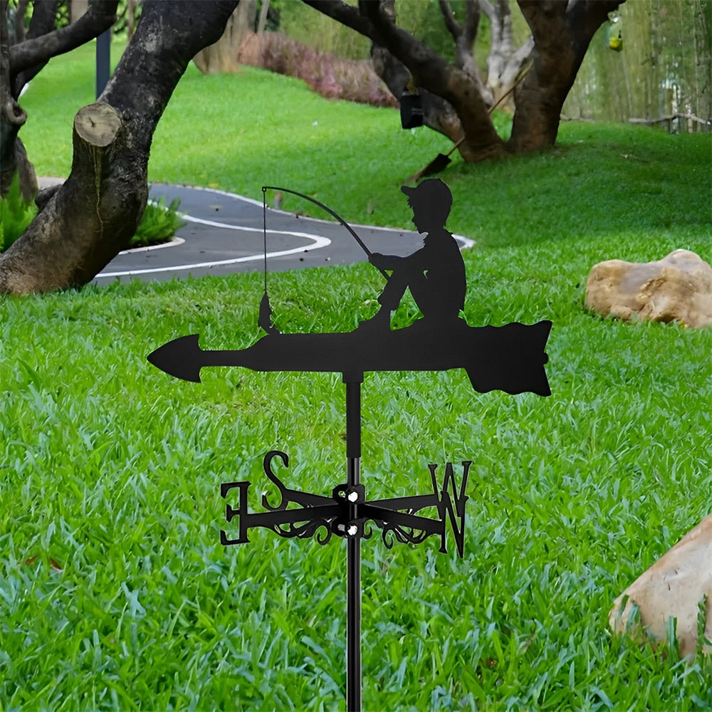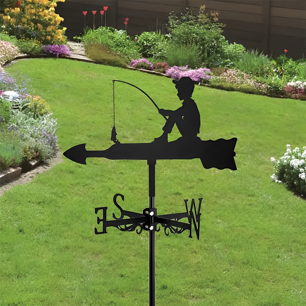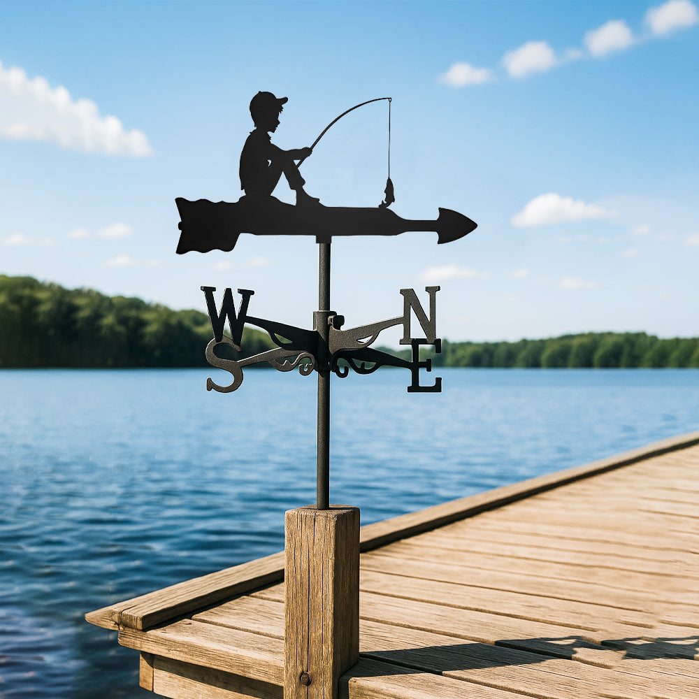 Kleiner Junge beim Angeln Edelstahl Wetterfahne