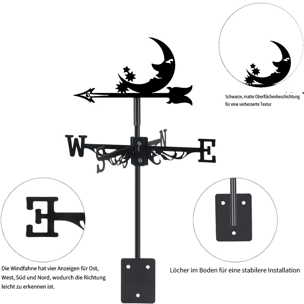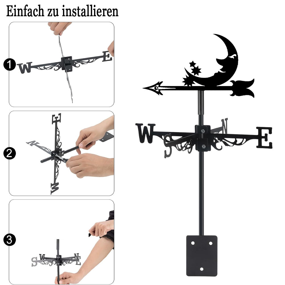 🌙Windrichtungsanzeiger: Unser einzigartiges Punktkontaktdesign sorgt dafür, dass sich unsere Windfahne leicht im Wind dreht. Der einzigartige Drehpunkt sorgt für eine reibungslose und störungsfreie Drehung. Zeigt die Richtung der Windgeschwindigkeit an.