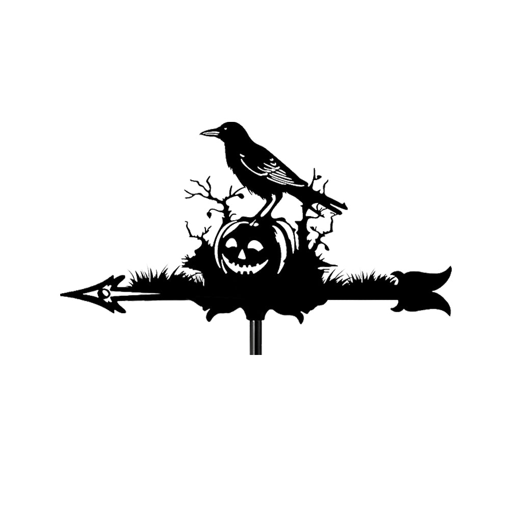 Halloween Gespenstisches Kürbisgesicht und Krähe Edelstahl Wetterfahne