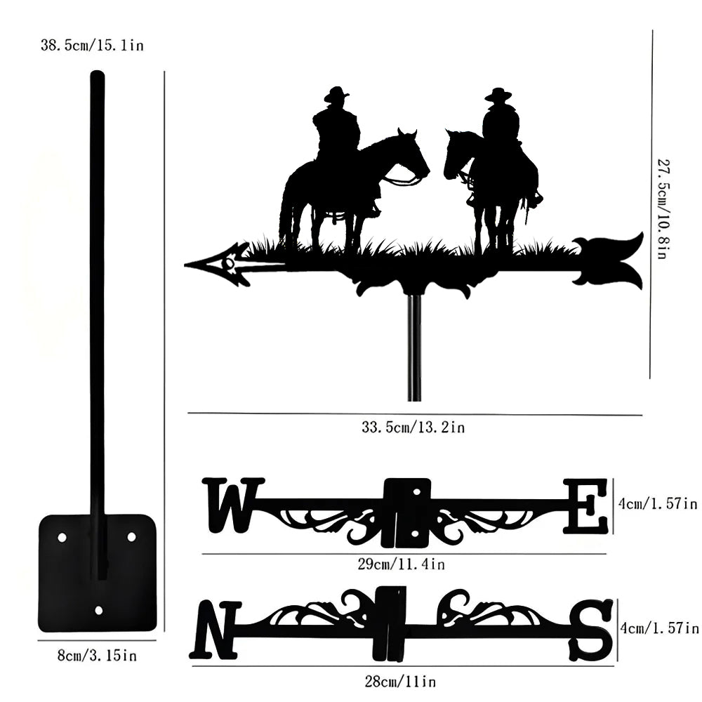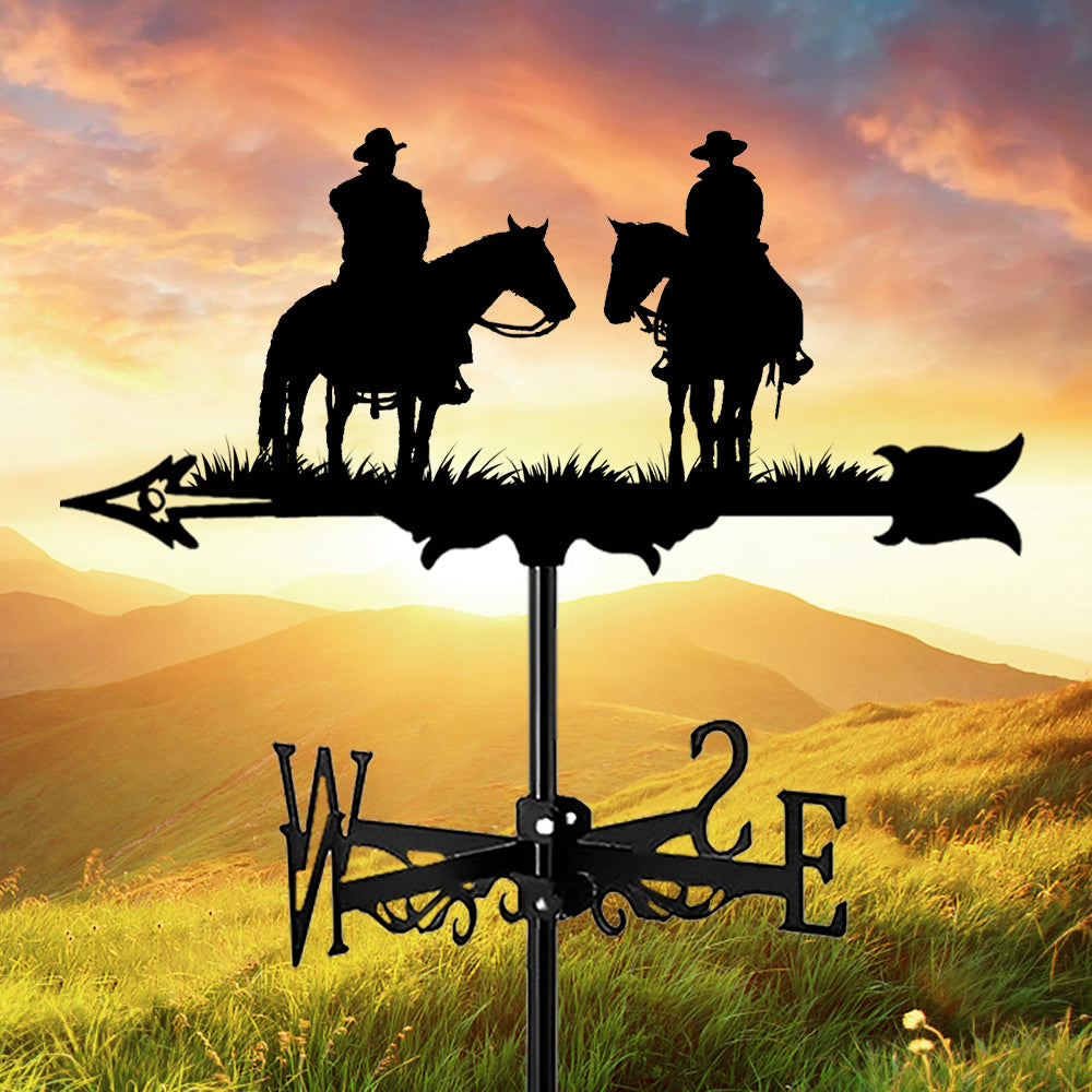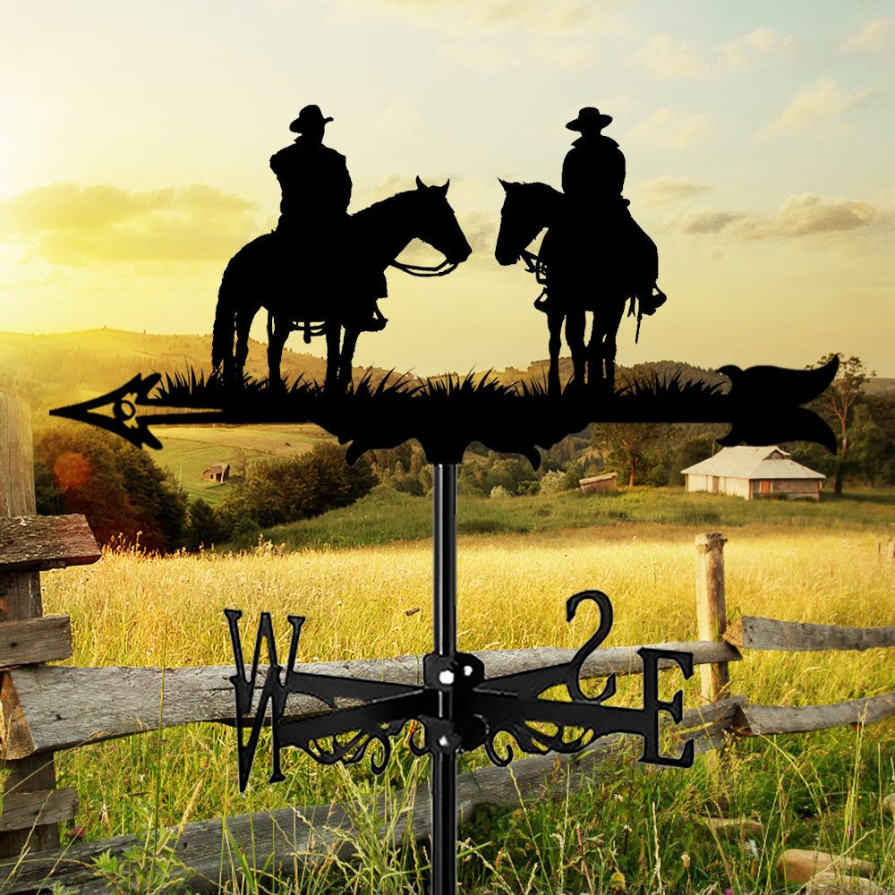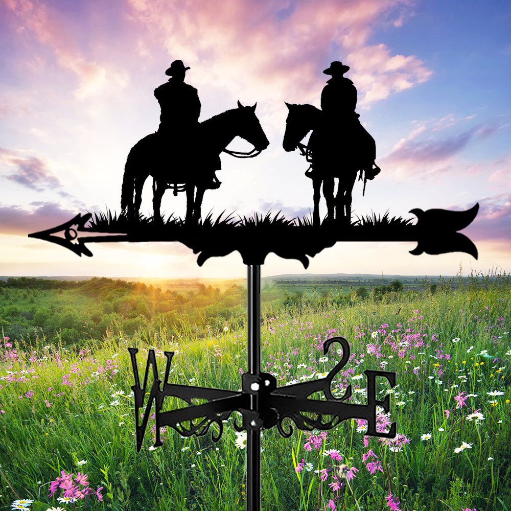 2-Personen Western Cowboy Edelstahl Wetterfahne