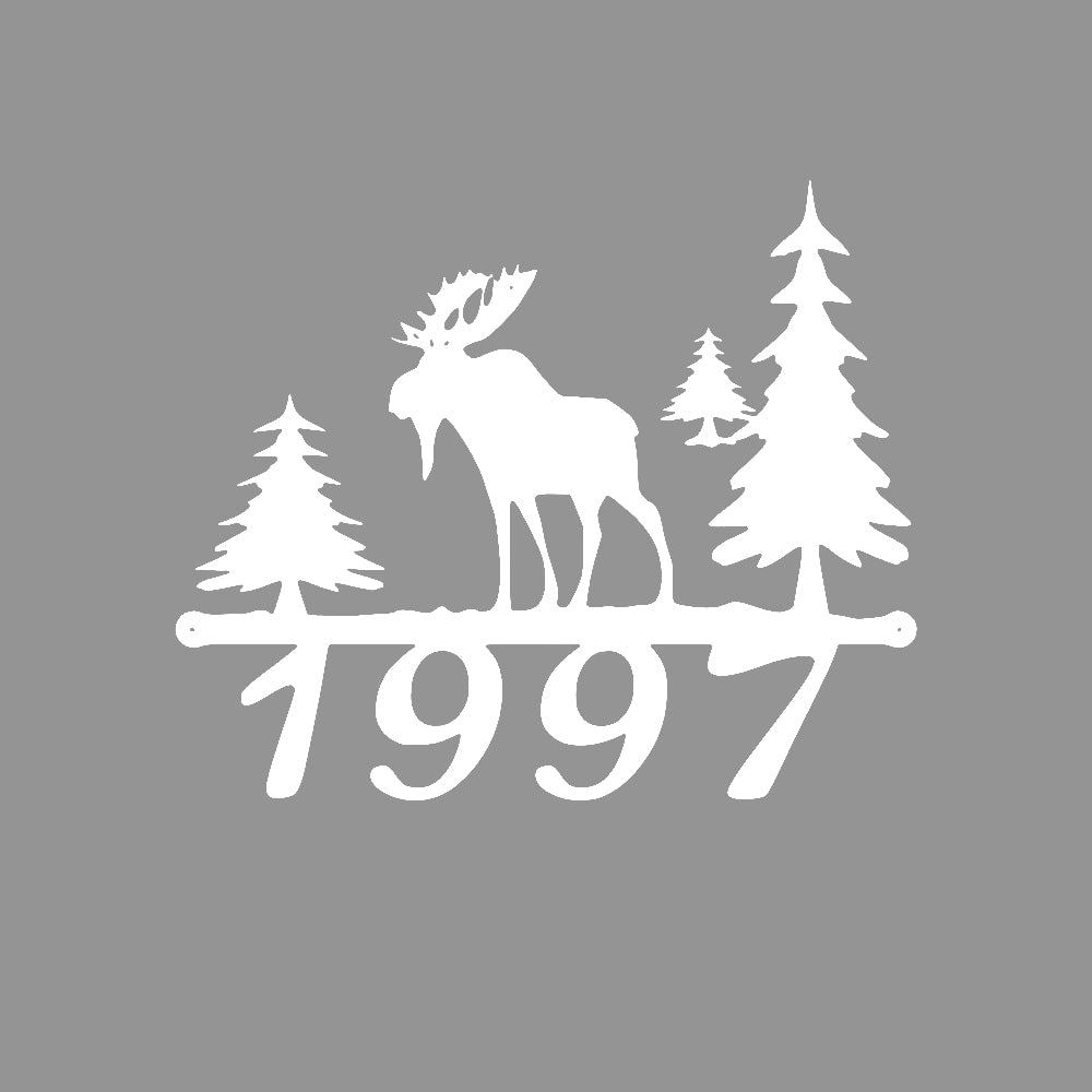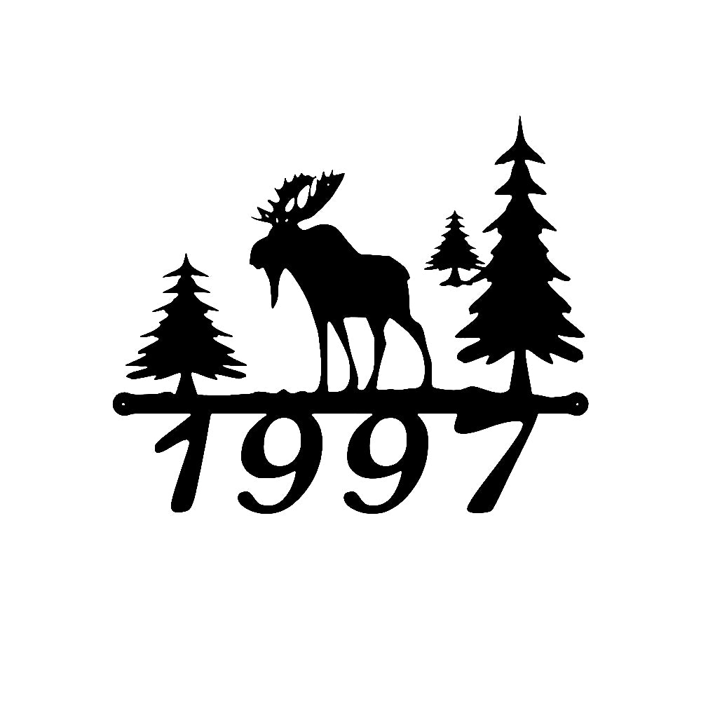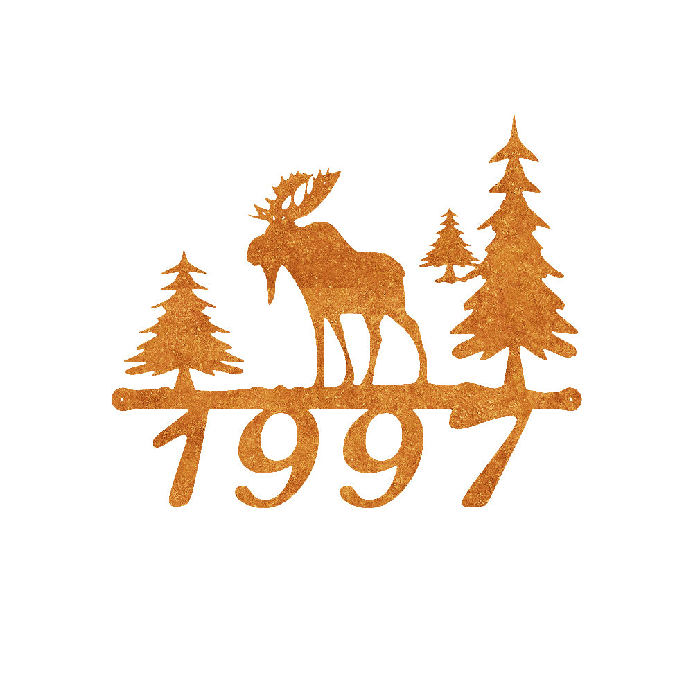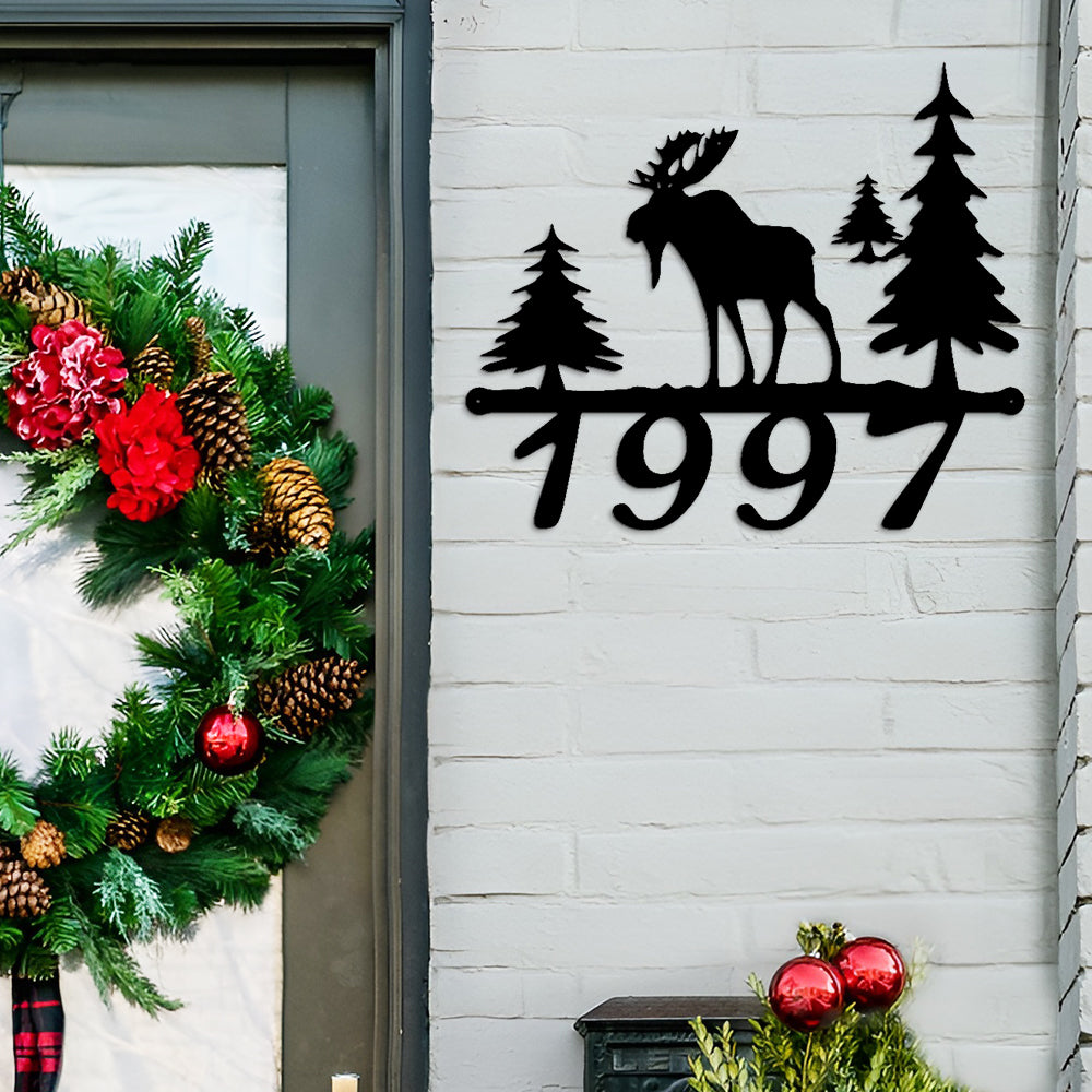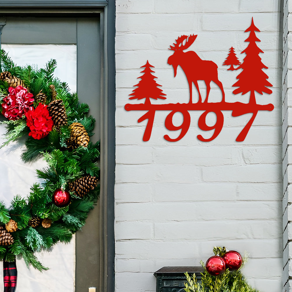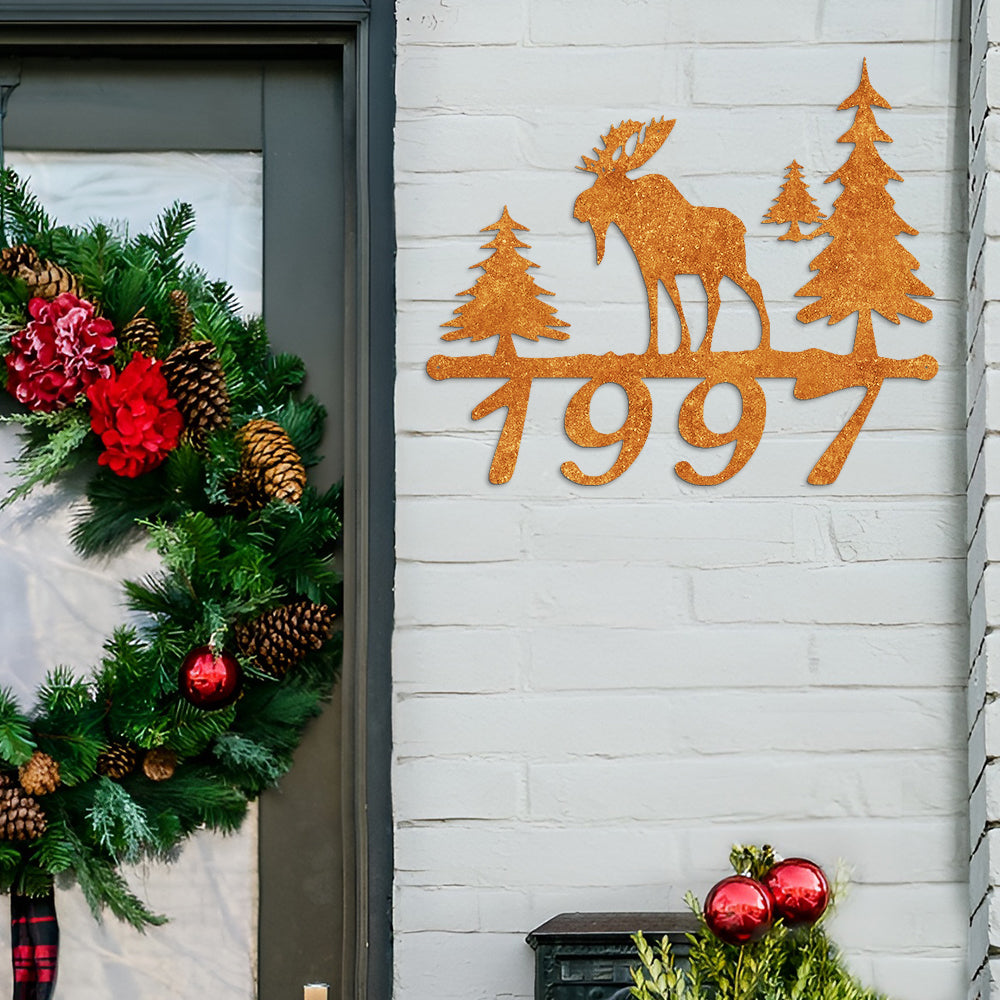 Elch und Kiefern Bäume Outdoor Rustikal Individuelles Adressmetallschild