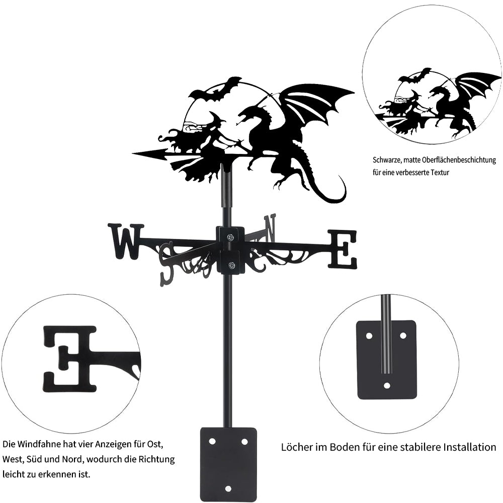 🌙Windrichtungsanzeiger: Unser einzigartiges Punktkontaktdesign sorgt dafür, dass sich unsere Windfahne leicht im Wind dreht. Der einzigartige Drehpunkt sorgt für eine reibungslose und störungsfreie Drehung. Zeigt die Richtung der Windgeschwindigkeit an.