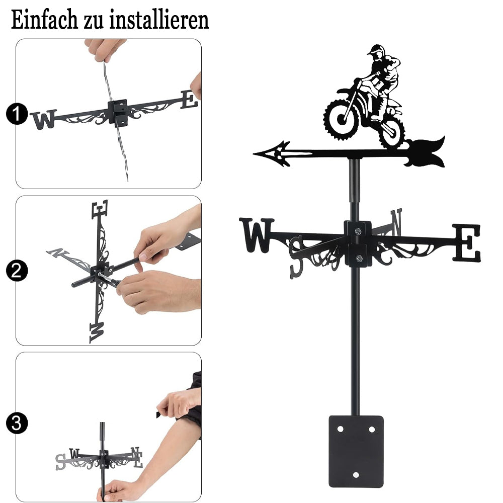 🌙Windrichtungsanzeiger: Unser einzigartiges Punktkontaktdesign sorgt dafür, dass sich unsere Windfahne leicht im Wind dreht. Der einzigartige Drehpunkt sorgt für eine reibungslose und störungsfreie Drehung. Zeigt die Richtung der Windgeschwindigkeit an.