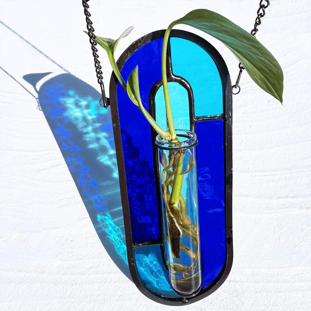 Blaue Welle Buntglas Hängende Propagationsvase - Bunter Sonnenfänger Pflanzenständer