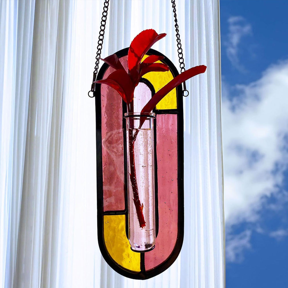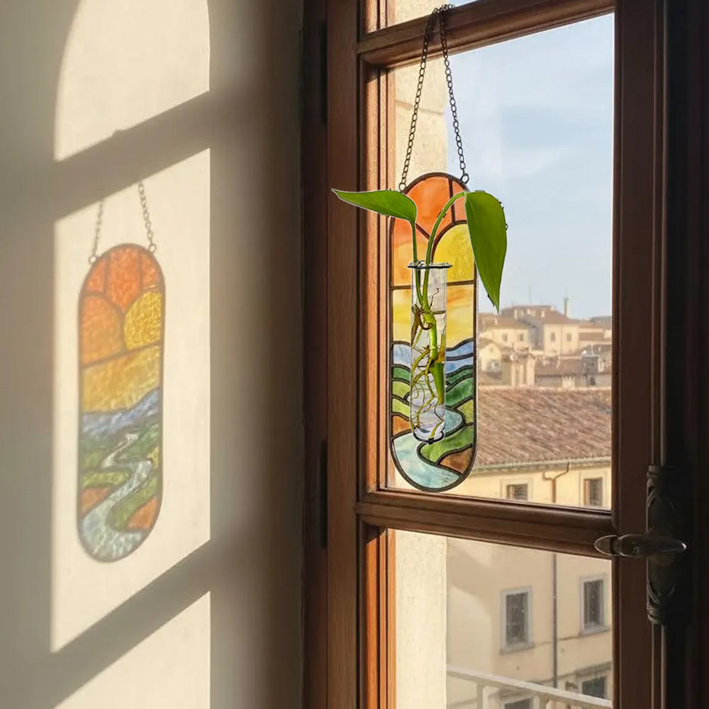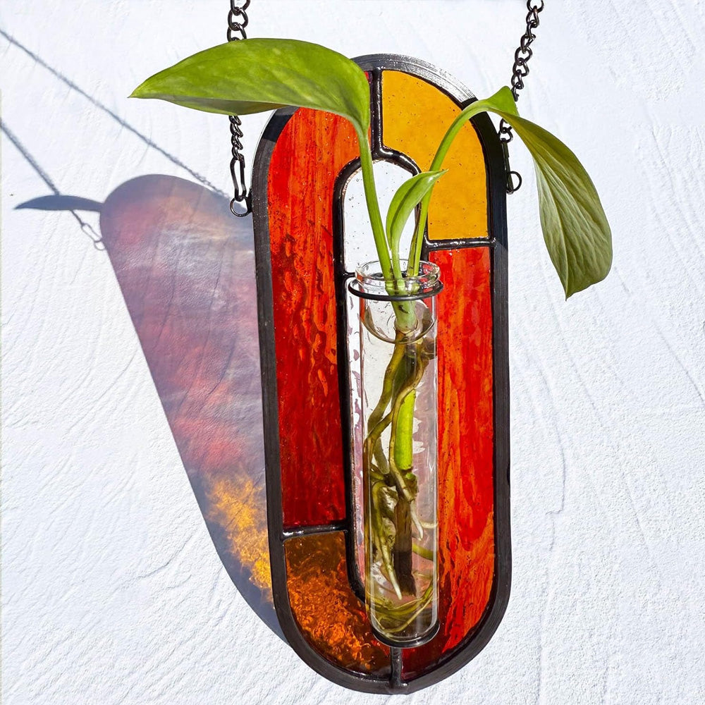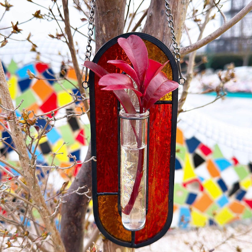 Roter Horizont Buntglas Hängende Propagationsvase - Bunter Sonnenfänger Pflanzenständer