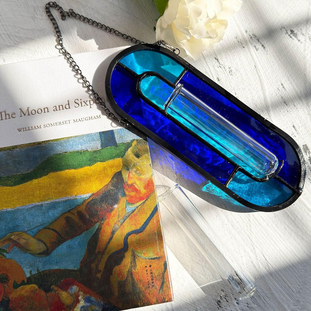 Blaue Welle Buntglas Hängende Propagationsvase - Bunter Sonnenfänger Pflanzenständer