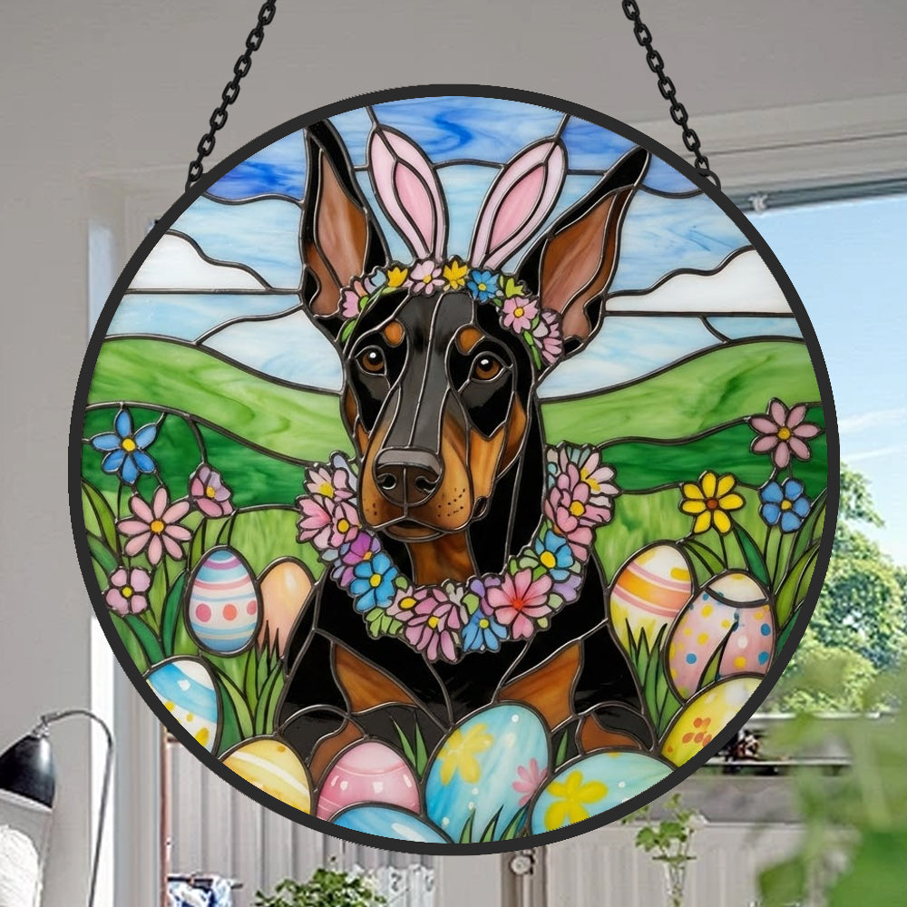 Dobermann Buntglas Sonnenfänger - Fenster Hängedekoration