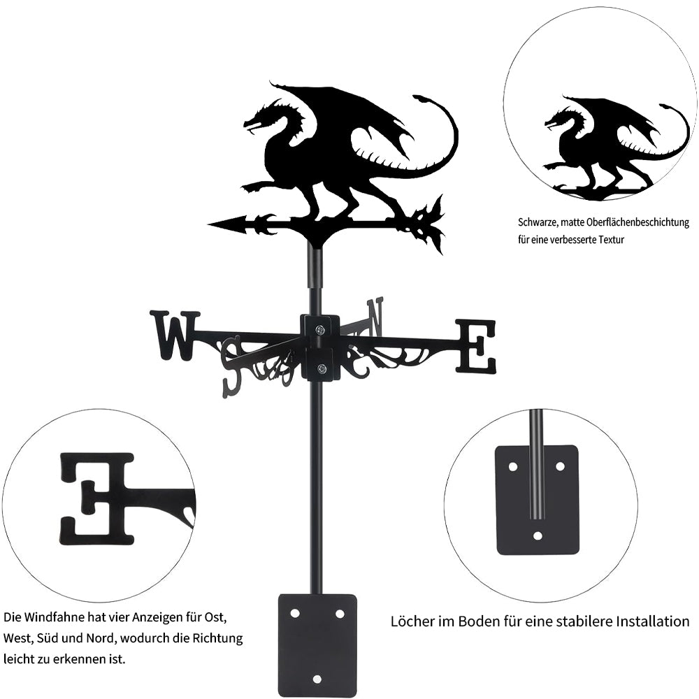 💕Kreatives Design: Diese Wetterfahne ist aus hochwertigem Edelstahl gefertigt. Mit stilvollen geraden Linien und satinierten schwarzen Oberflächen. Diese Wetterfahne aus rostfreiem Eisen ist mit exquisiten Mustern verziert.