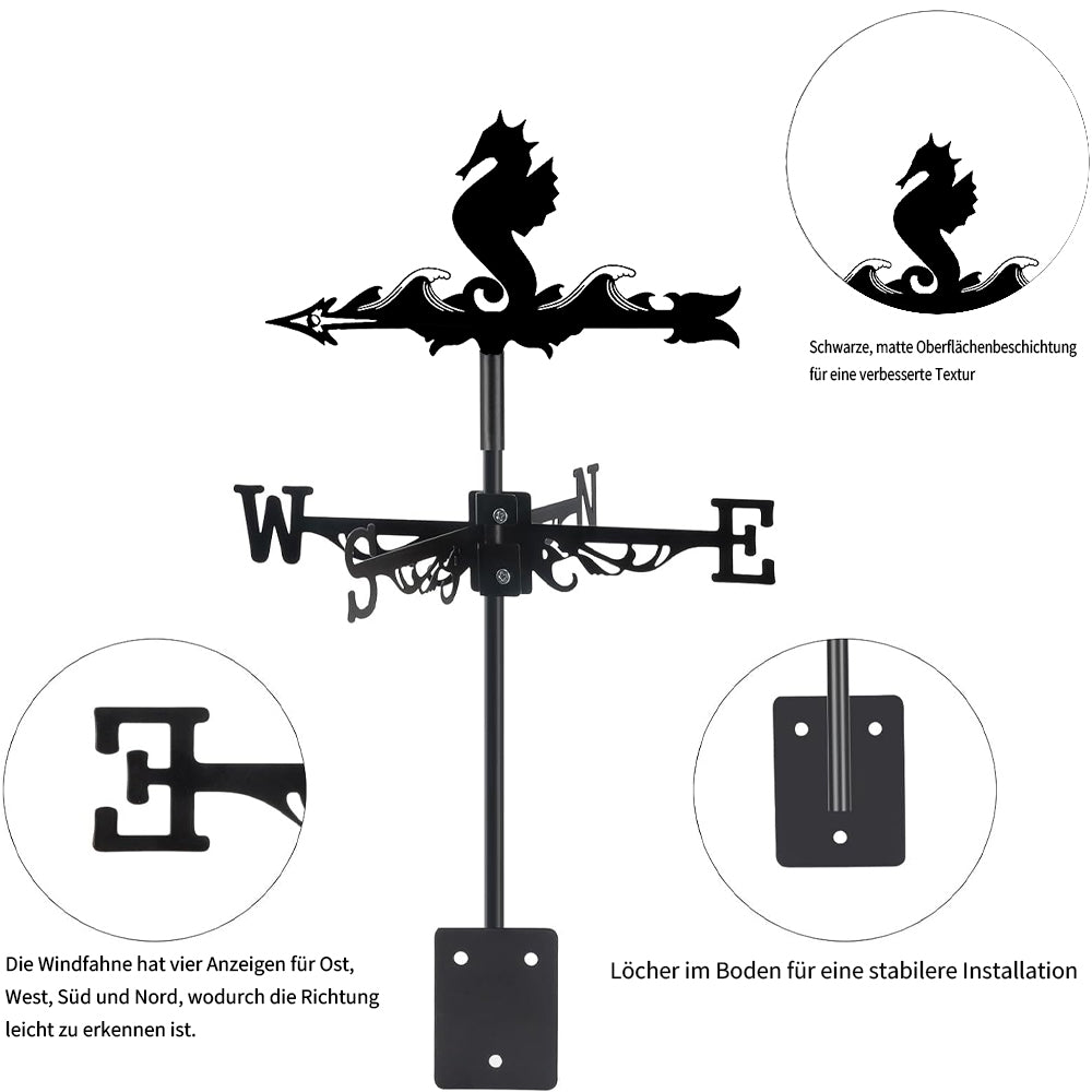 💕Kreatives Design: Diese Wetterfahne ist aus hochwertigem Edelstahl gefertigt. Mit stilvollen geraden Linien und satinierten schwarzen Oberflächen. Diese Wetterfahne aus rostfreiem Eisen ist mit exquisiten Mustern verziert.