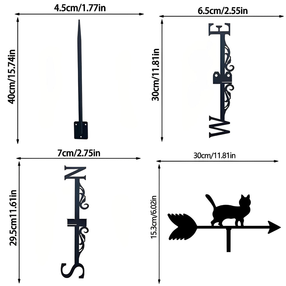 💕Kreatives Design: Diese Wetterfahne ist aus hochwertigem Edelstahl gefertigt. Mit stilvollen geraden Linien und satinierten schwarzen Oberflächen. Diese Wetterfahne aus rostfreiem Eisen ist mit exquisiten Mustern verziert.