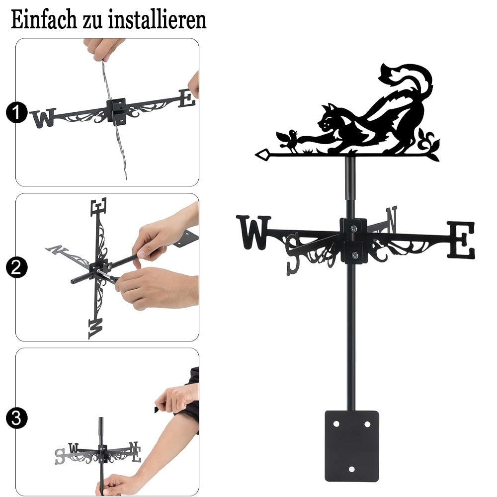 🌙Windrichtungsanzeiger: Unser einzigartiges Punktkontaktdesign sorgt dafür, dass sich unsere Windfahne leicht im Wind dreht. Der einzigartige Drehpunkt sorgt für eine reibungslose und störungsfreie Drehung. Zeigt die Richtung der Windgeschwindigkeit an.
