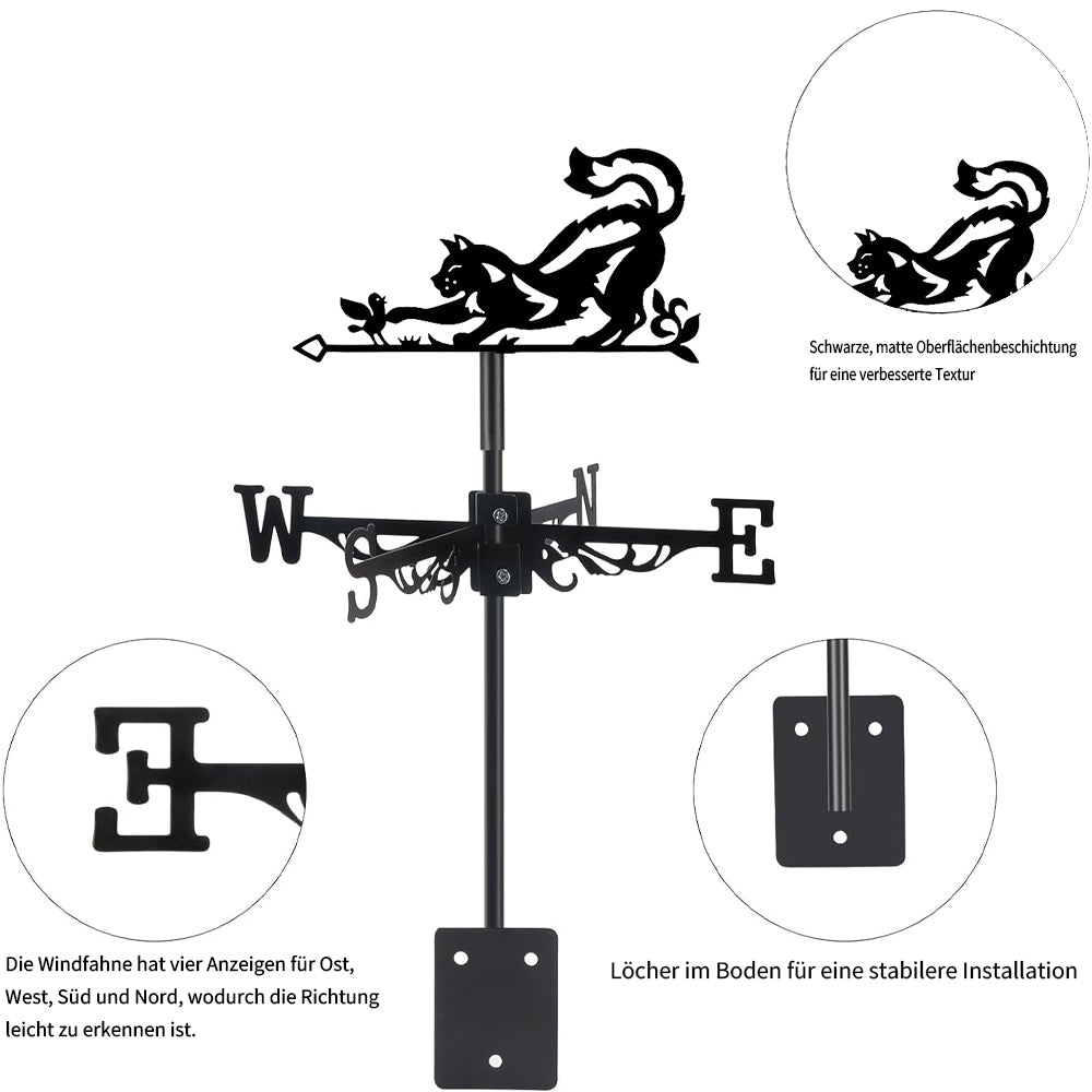 💕Kreatives Design: Diese Wetterfahne ist aus hochwertigem Edelstahl gefertigt. Mit stilvollen geraden Linien und satinierten schwarzen Oberflächen. Diese Wetterfahne aus rostfreiem Eisen ist mit exquisiten Mustern verziert.