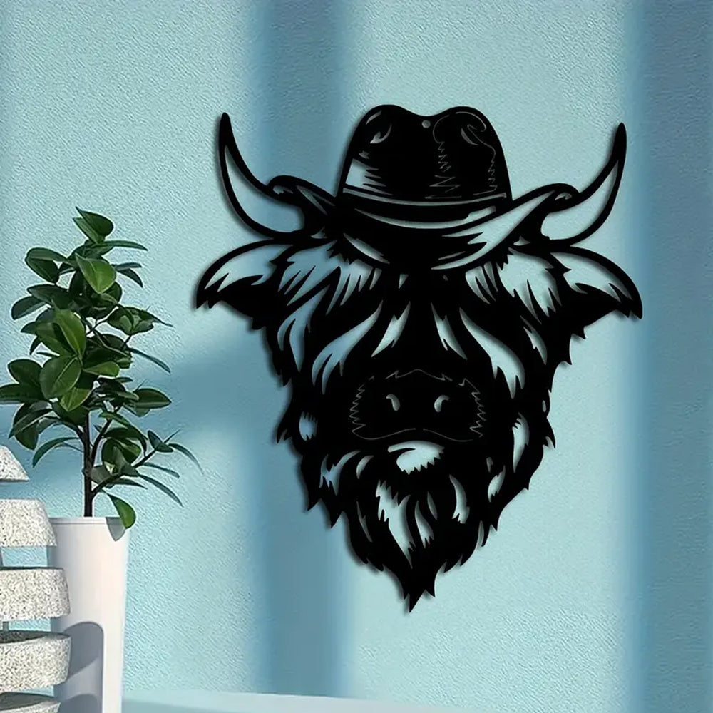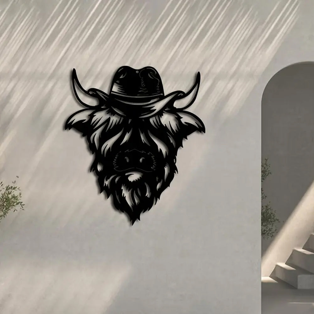 Hochlandkuhkopf Metallschild Wanddekoration
