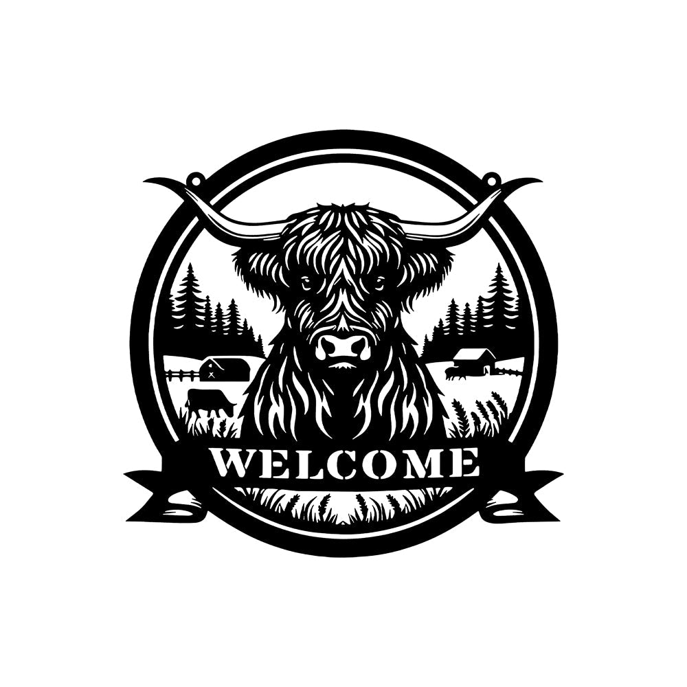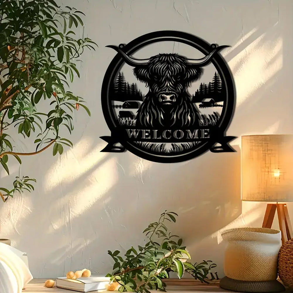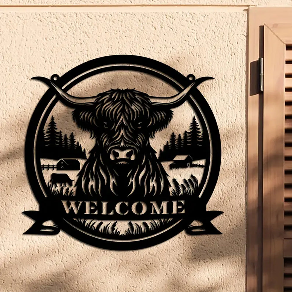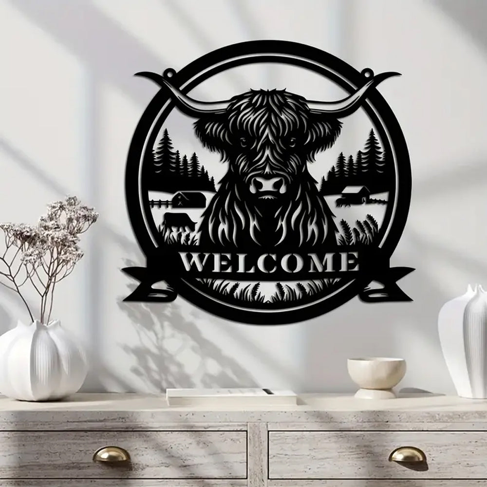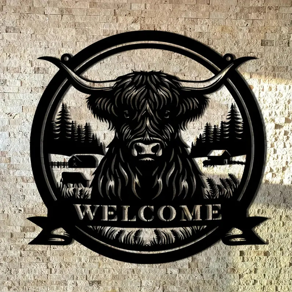 Hochlandrind Willkommensschild aus Metall Wanddekoration