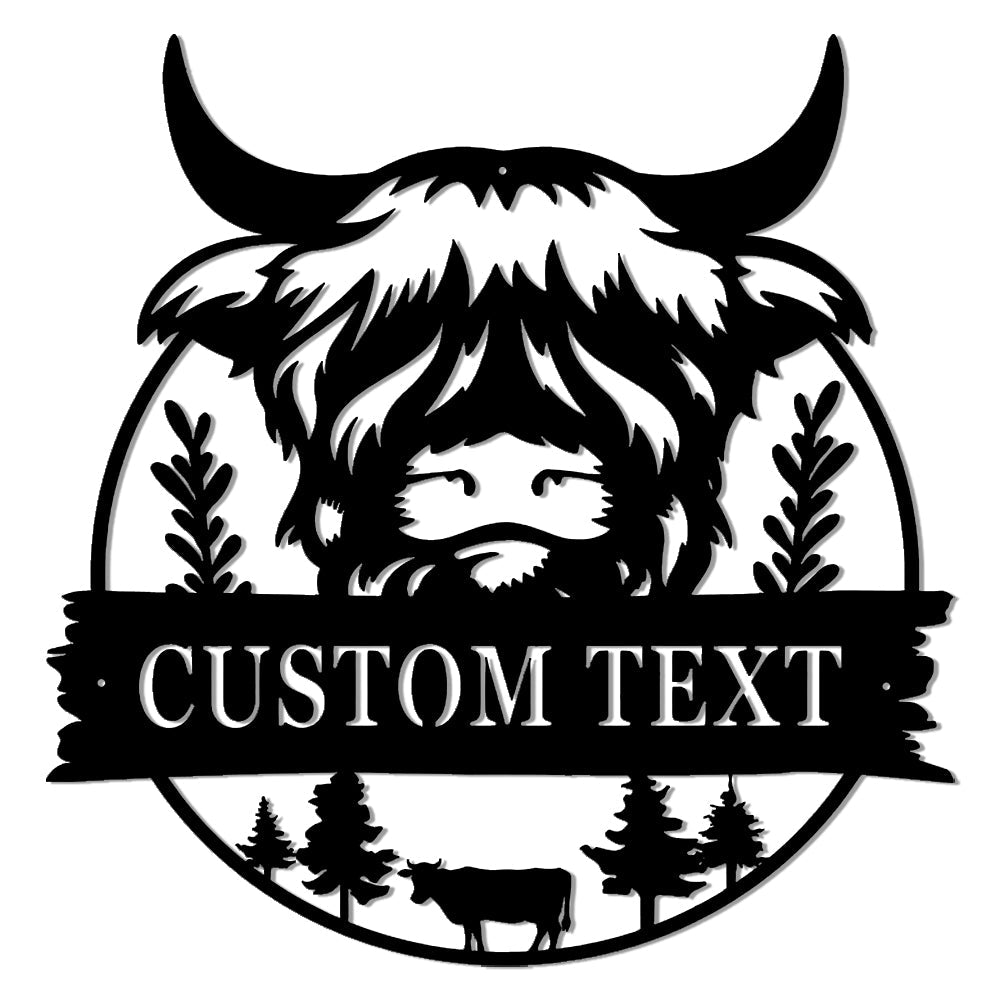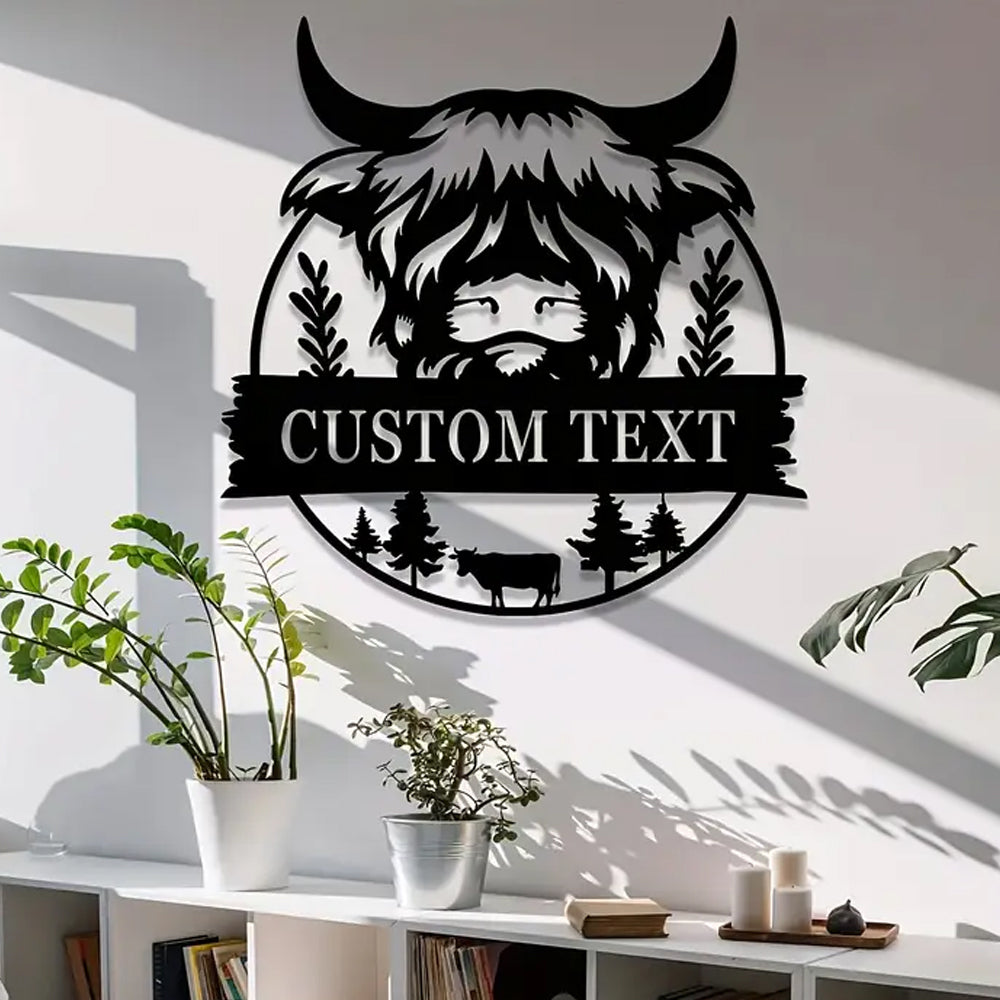 Individuelle Personalisierte Schottische Hochlandkuh Metall Wanddekoration