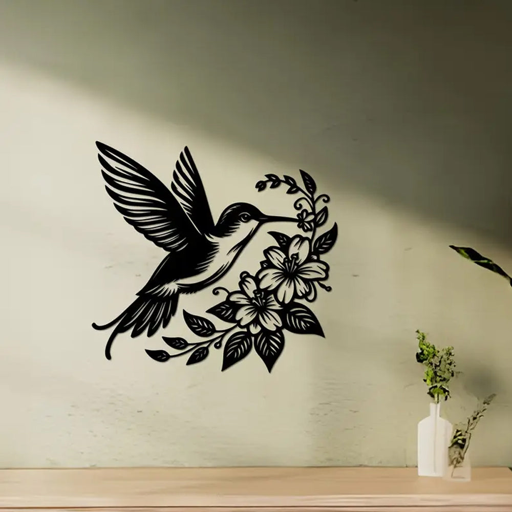Kolibri und Blumen Metallschild Metall Wanddekoration