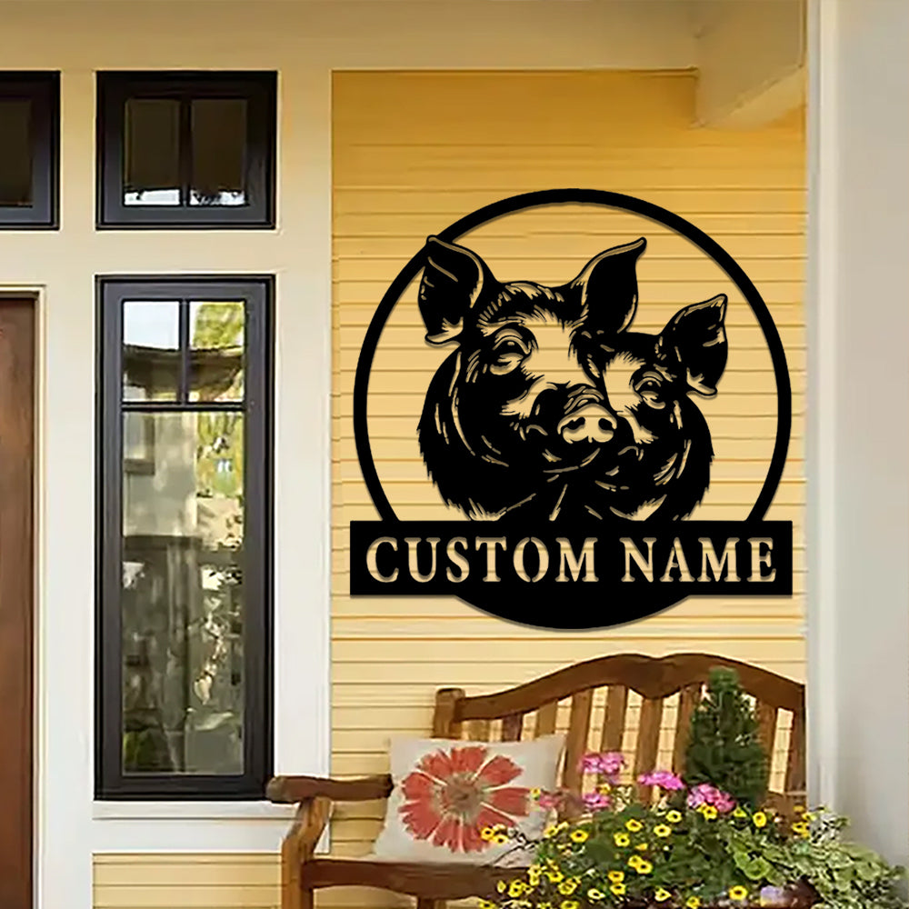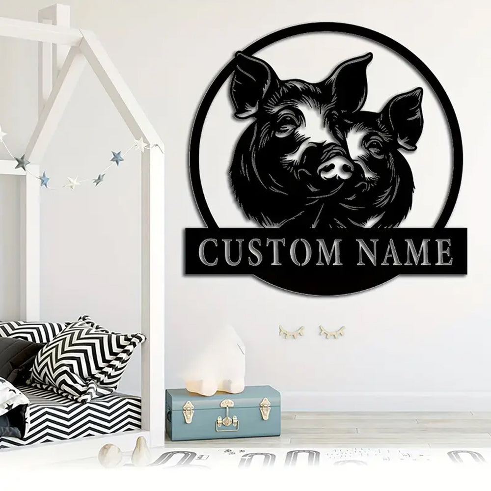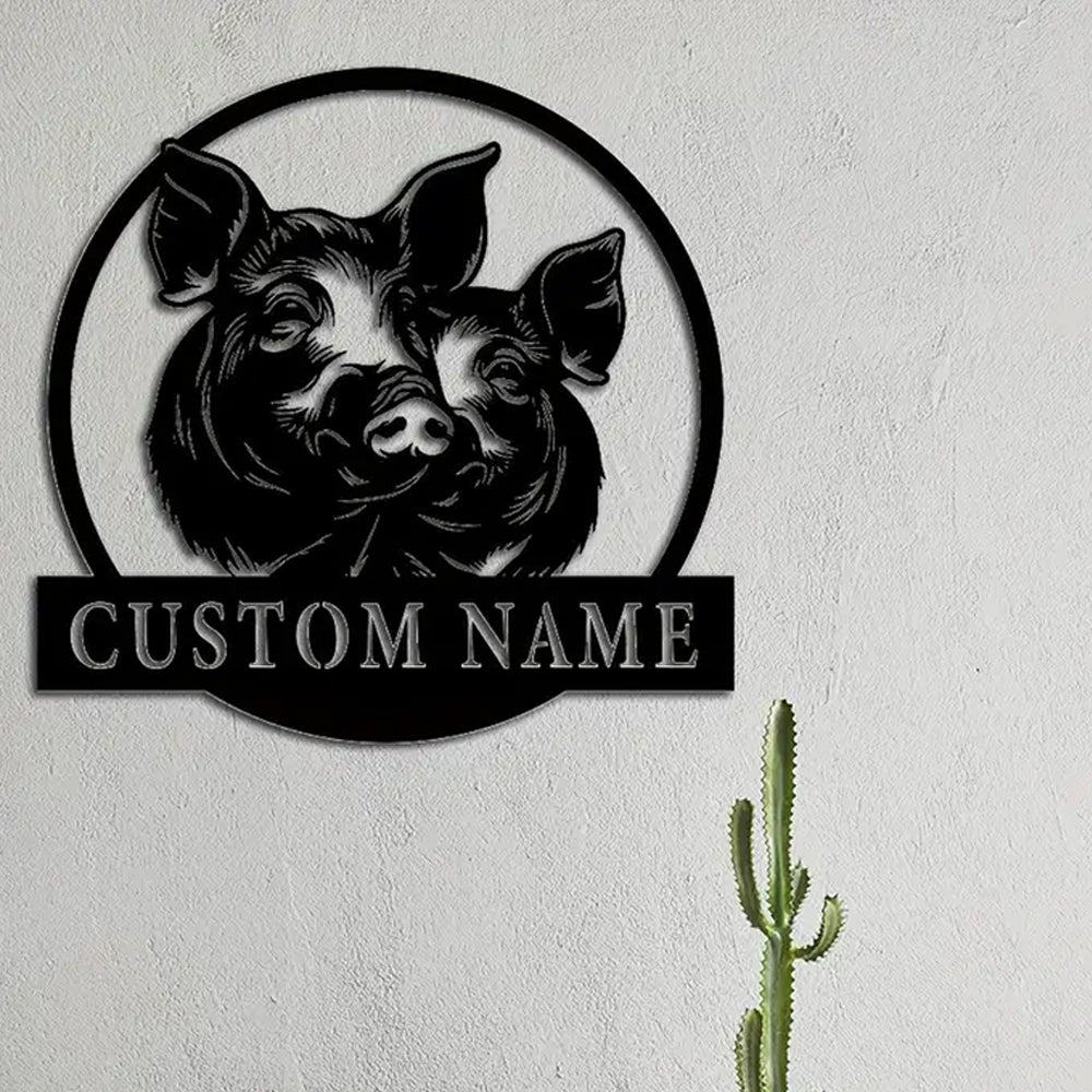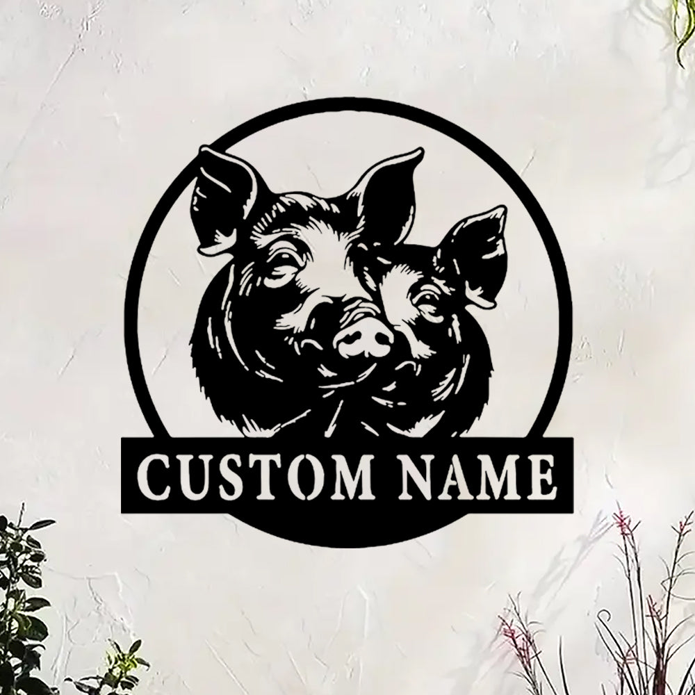 Personalisiertes Rustikales Schwein Silhouette Metallschild Wanddekoration