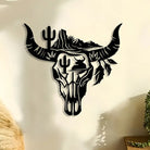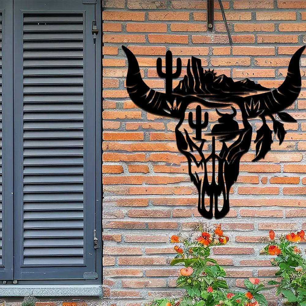Rustikaler Stil Stierschädel mit Kaktus Metallschild Wanddekoration