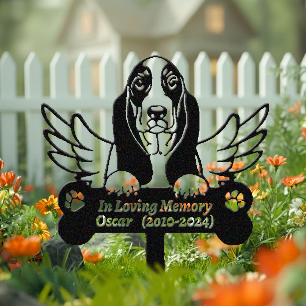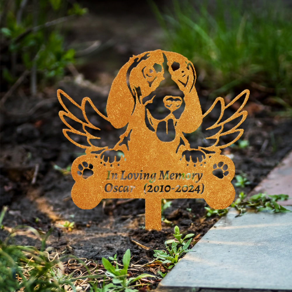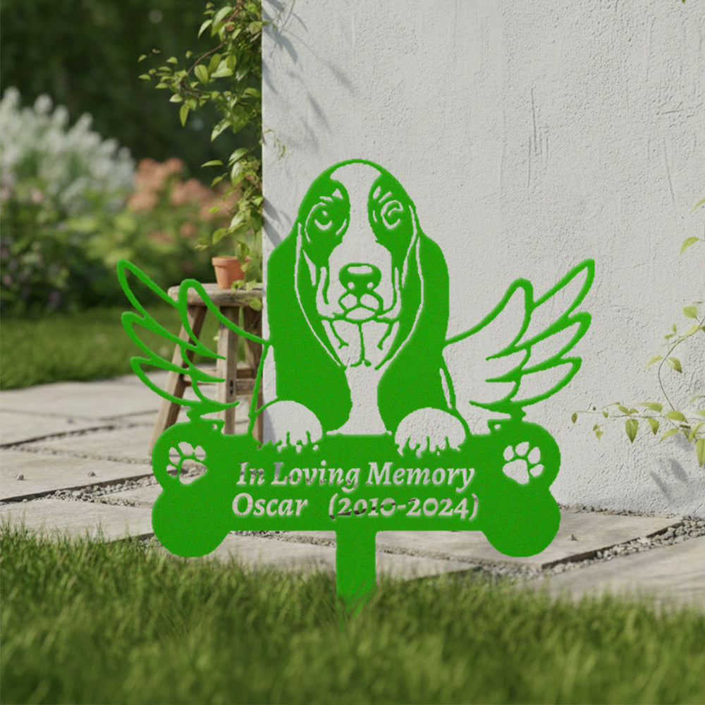 Basset Hound Individueller Gedenkpfahl mit Flügeln
