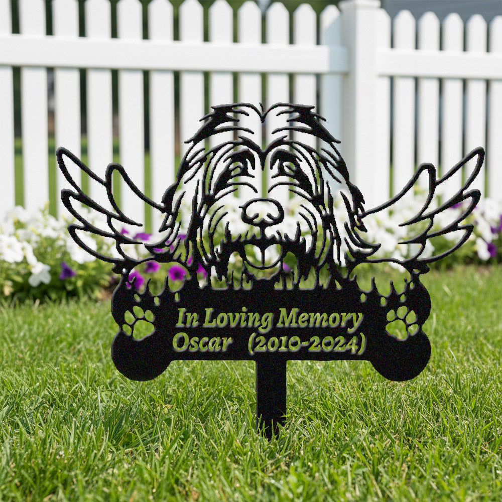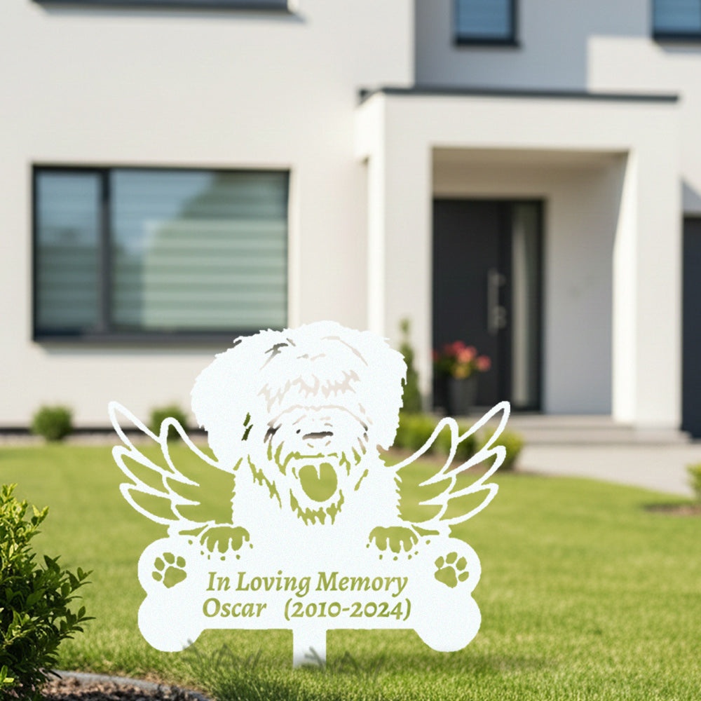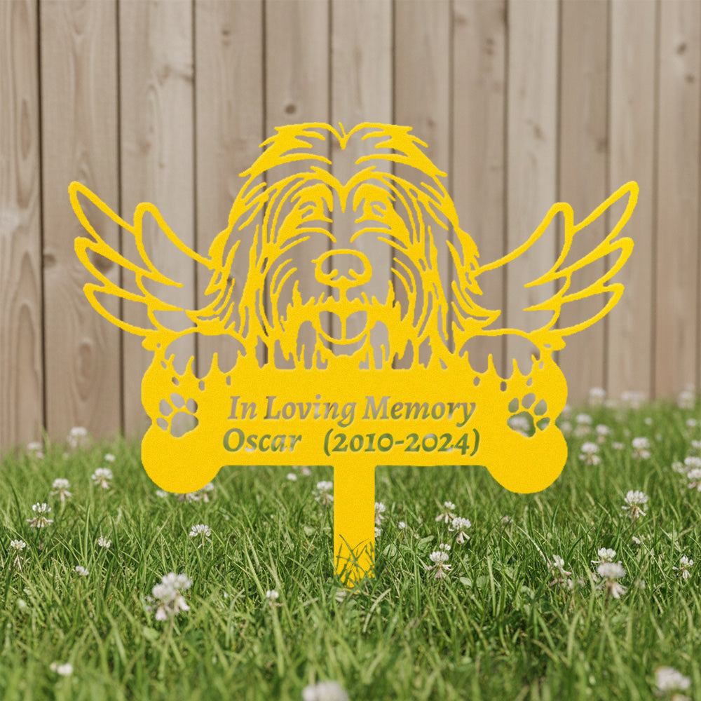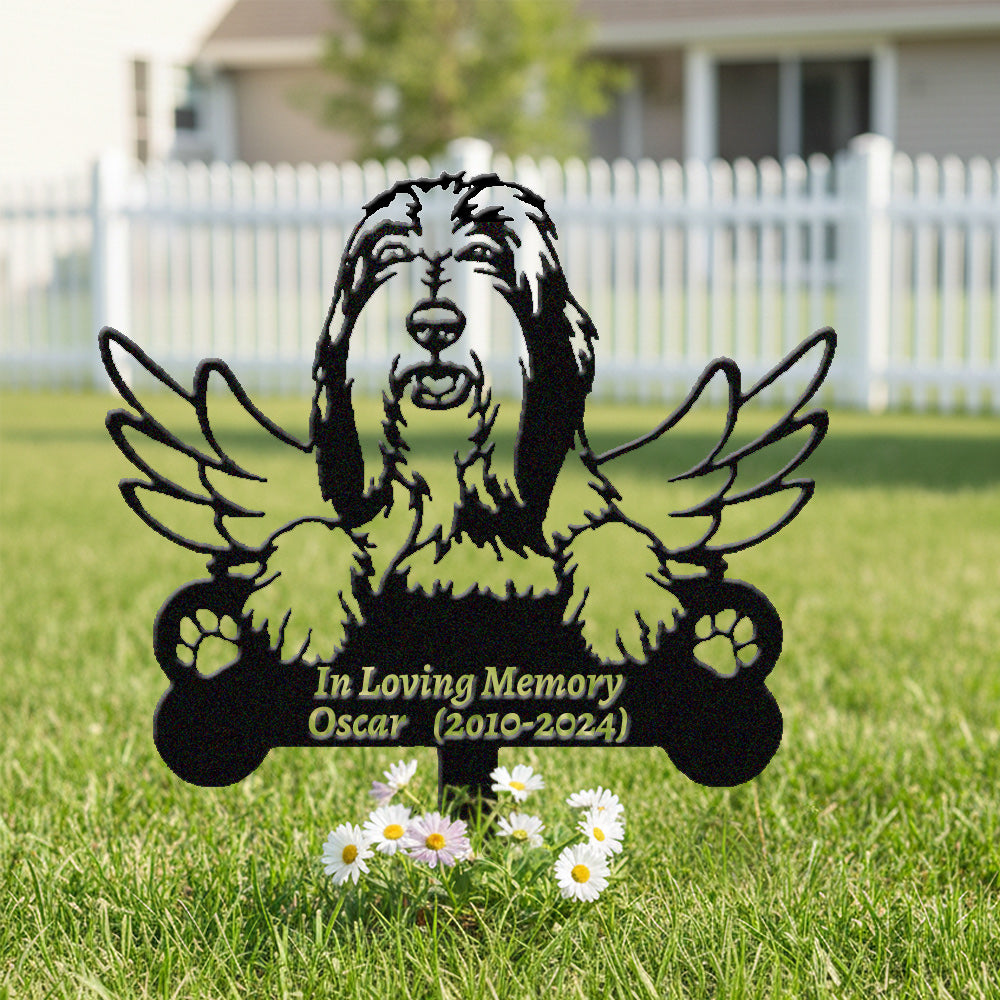 Bearded Collie Individueller Gedenkpfahl mit Flügeln
