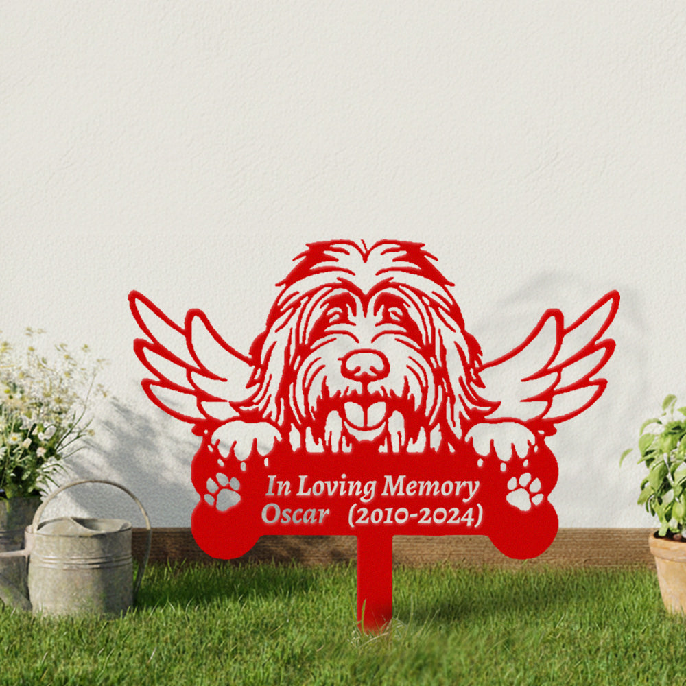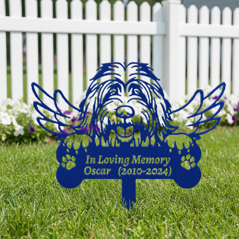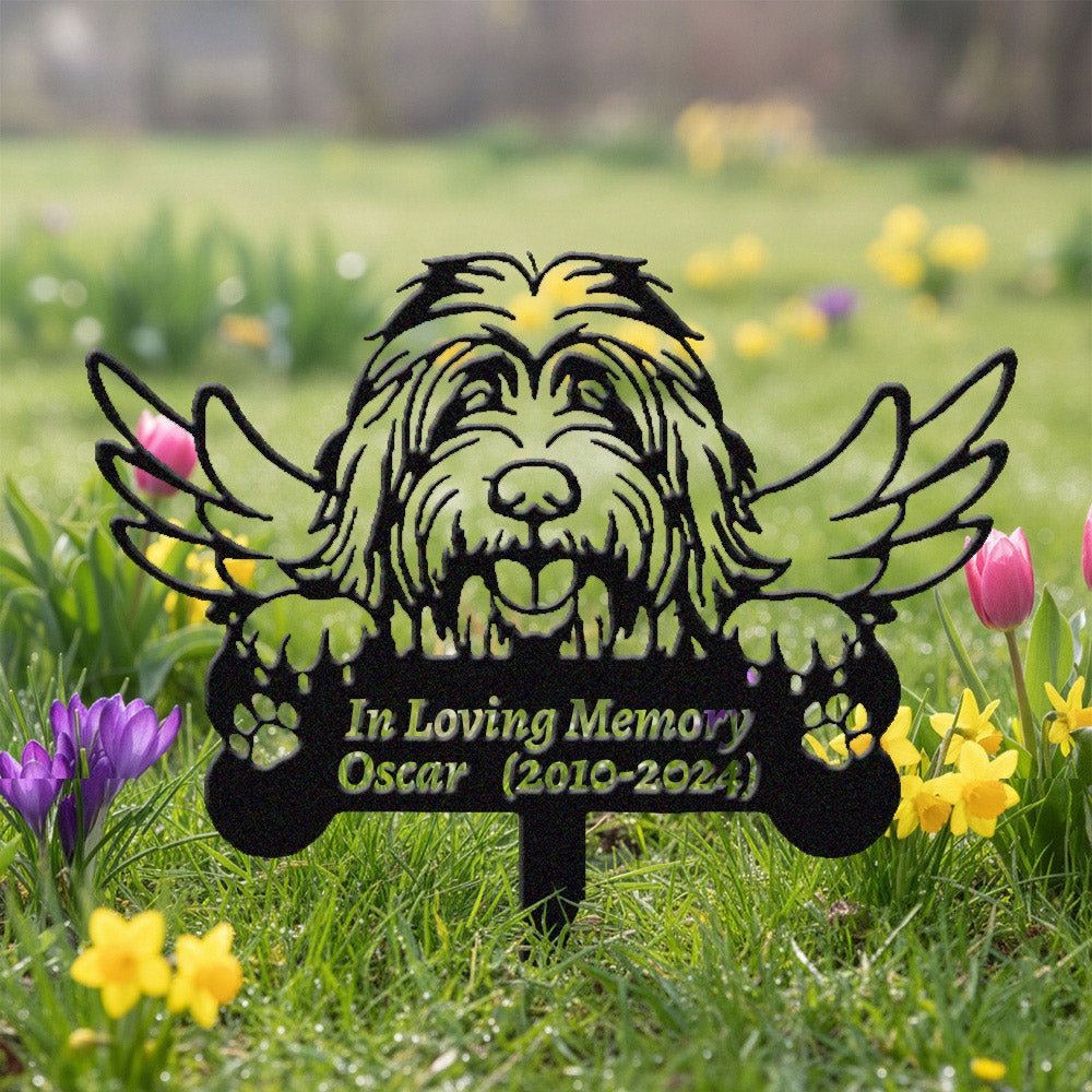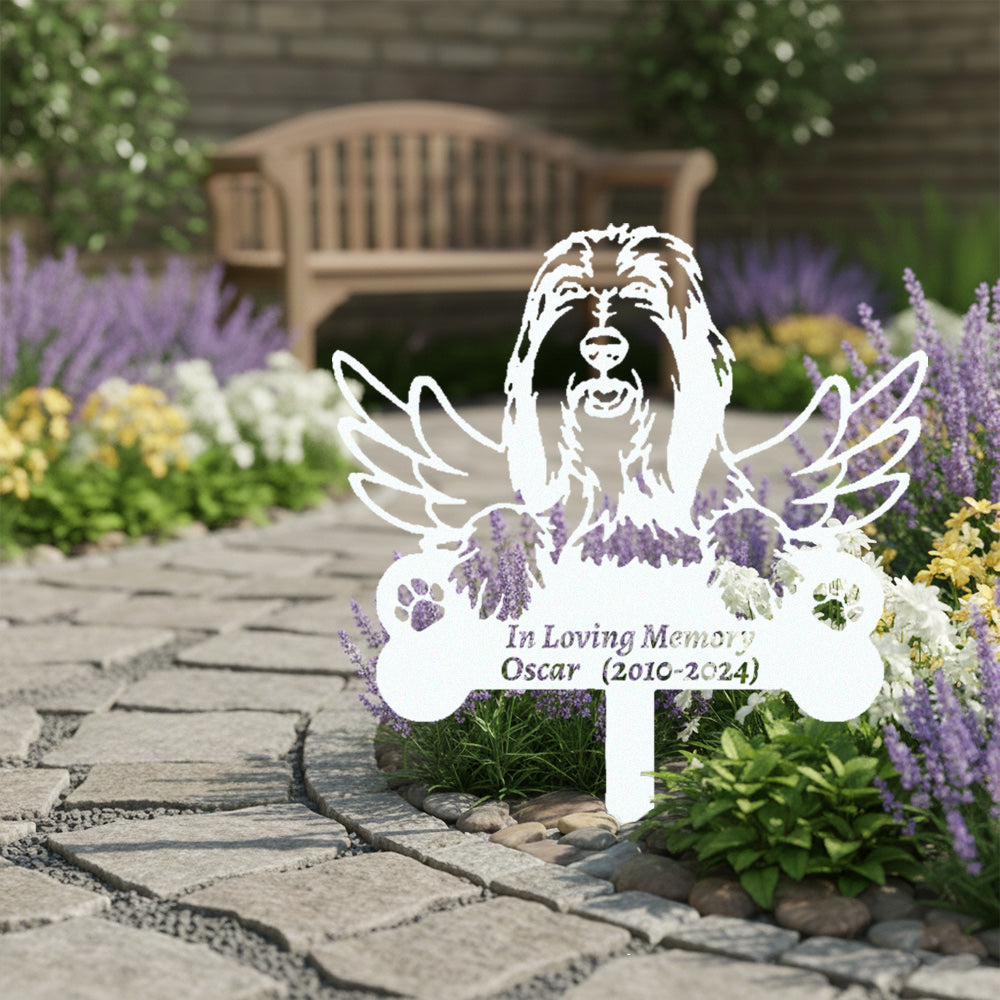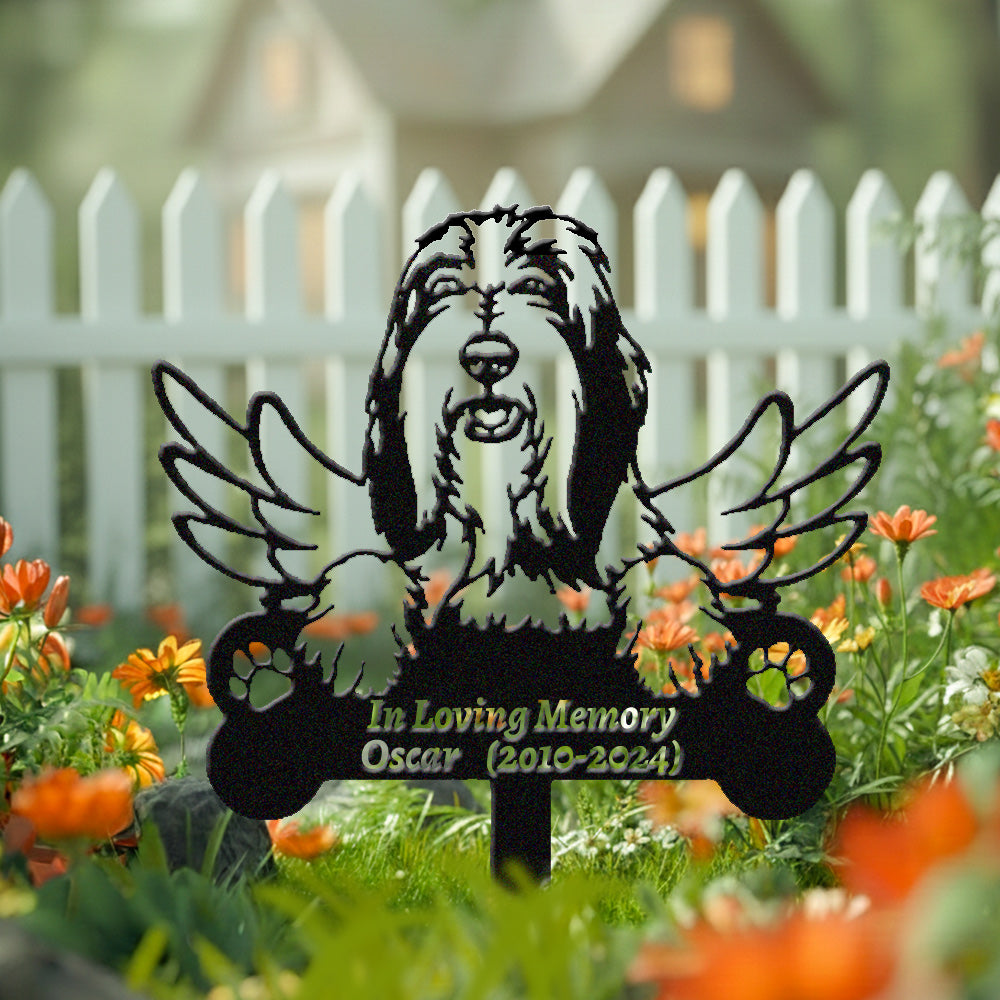 Bearded Collie Individueller Gedenkpfahl mit Flügeln