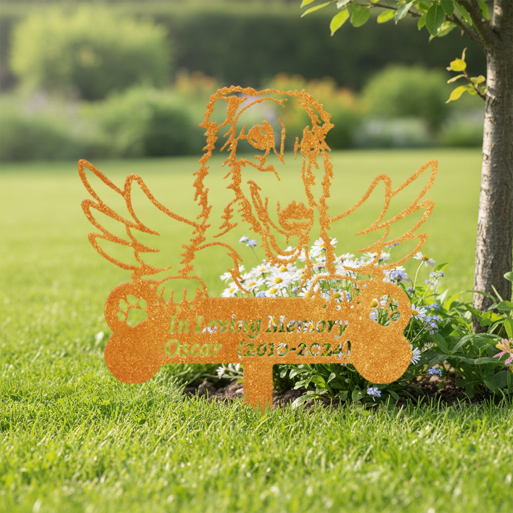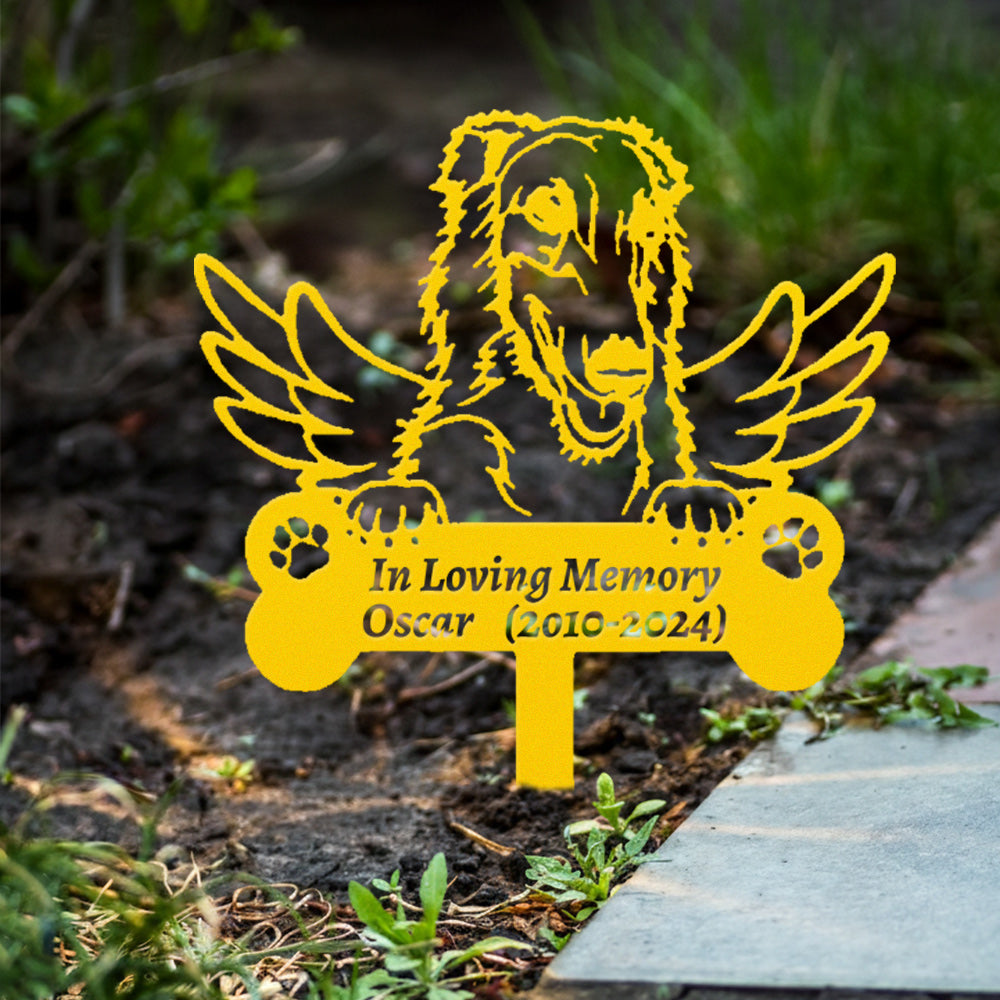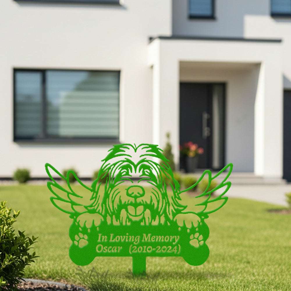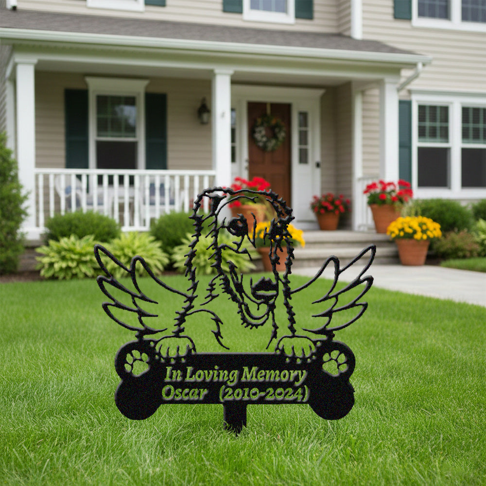 Bearded Collie Individueller Gedenkpfahl mit Flügeln