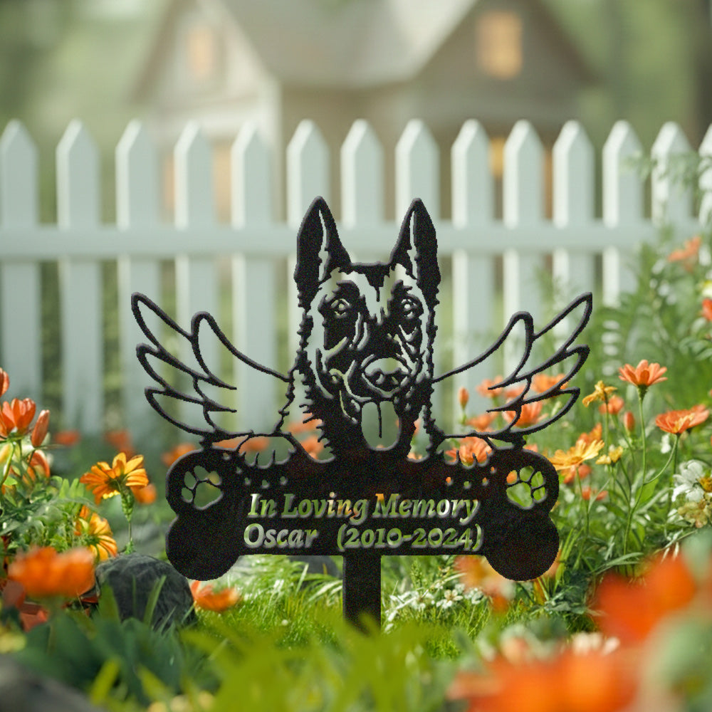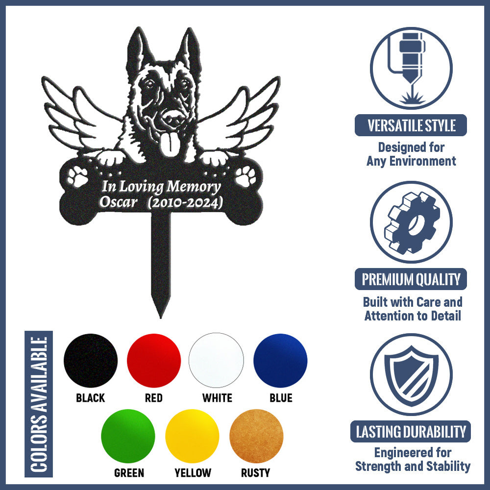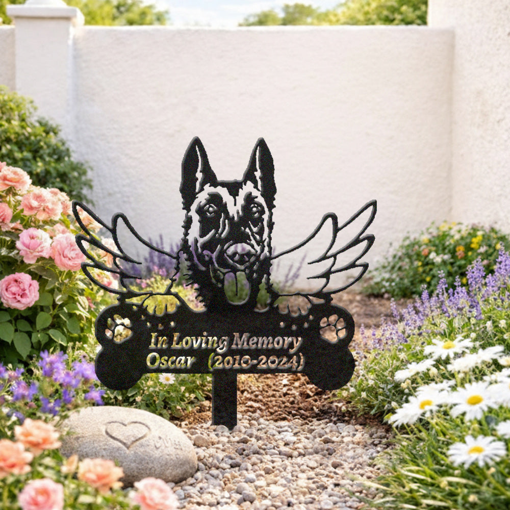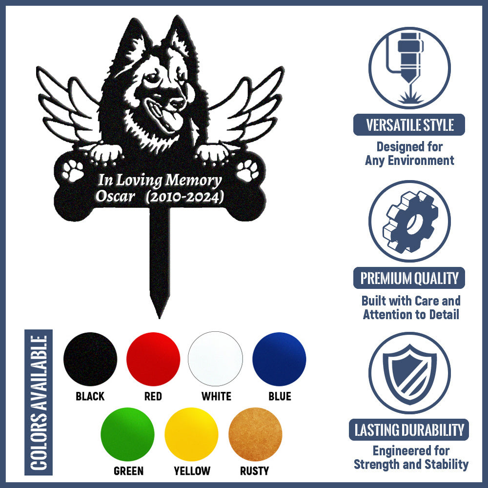 Belgischer Schäferhund Individueller Gedenkpfahl mit Flügeln