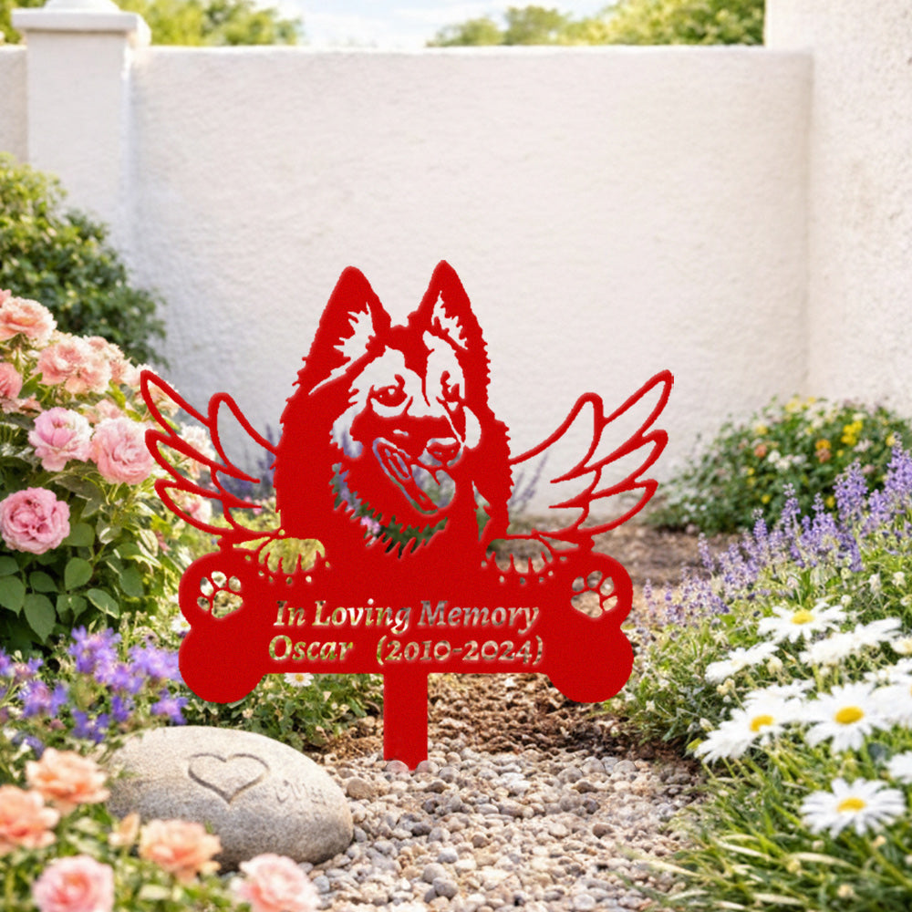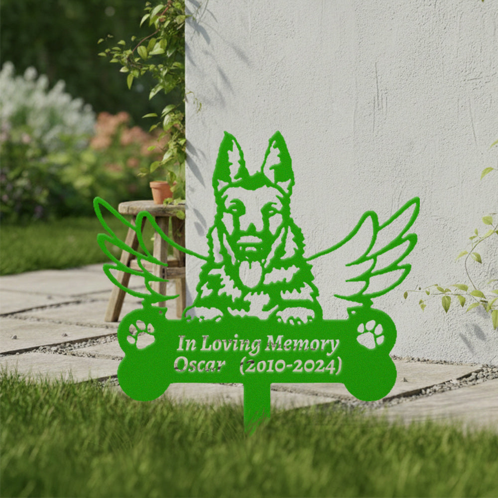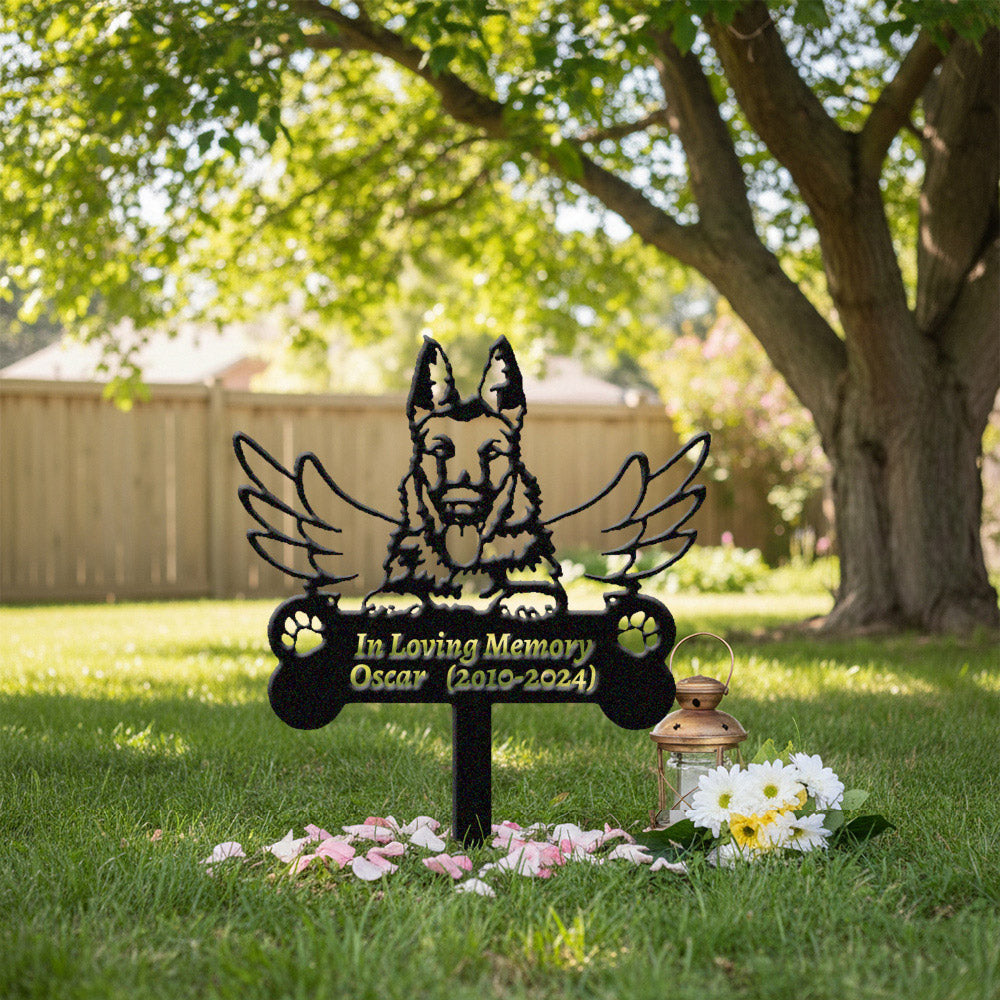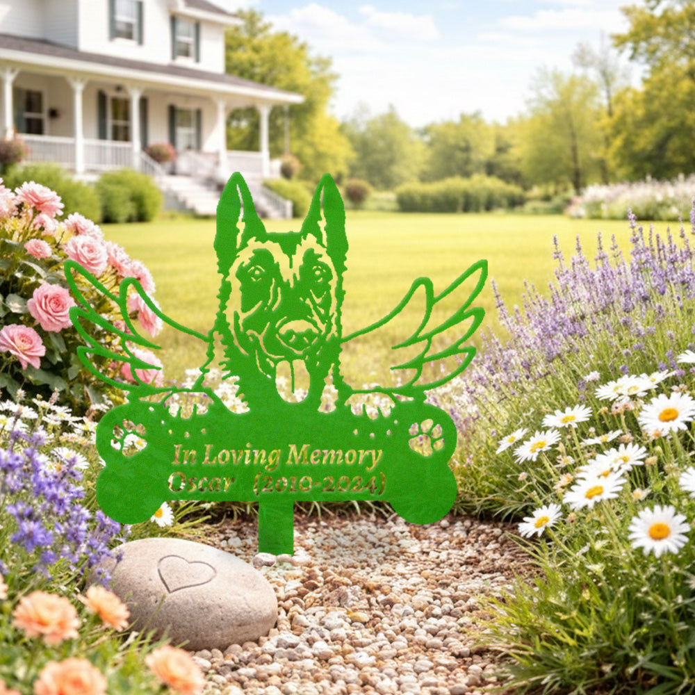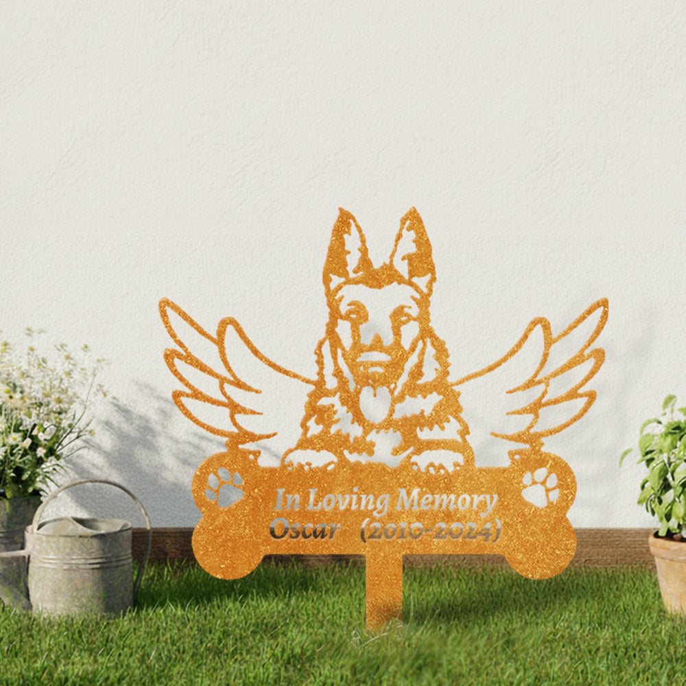 Belgischer Schäferhund Individueller Gedenkpfahl mit Flügeln