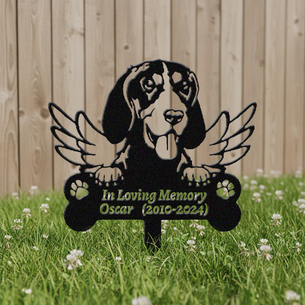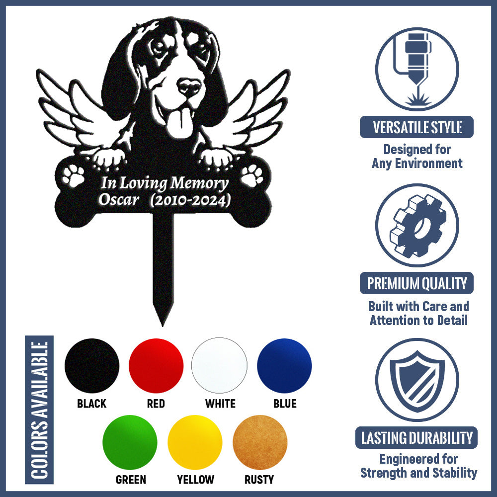 Bluetick Coonhound Individueller Gedenkpfahl mit Flügeln