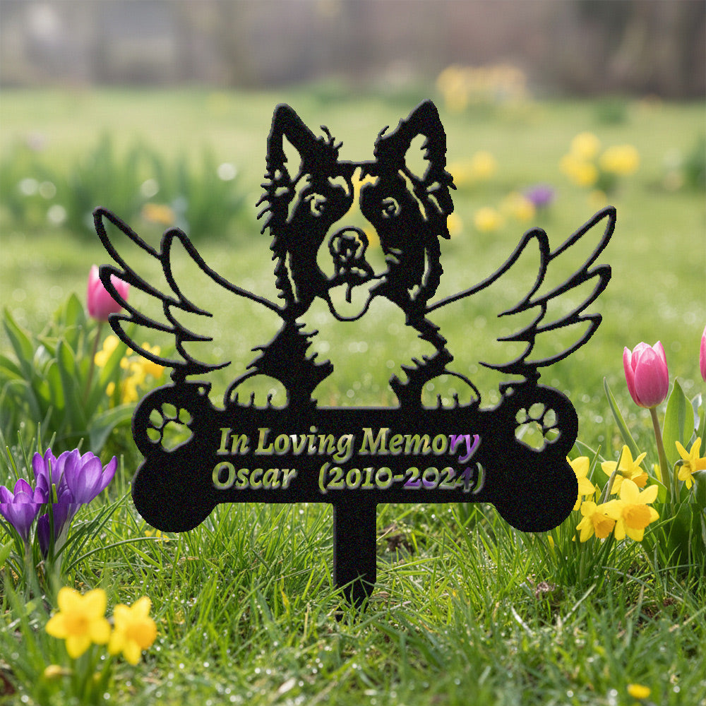 Australian Shepherd Individueller Gedenkpfahl mit Flügeln