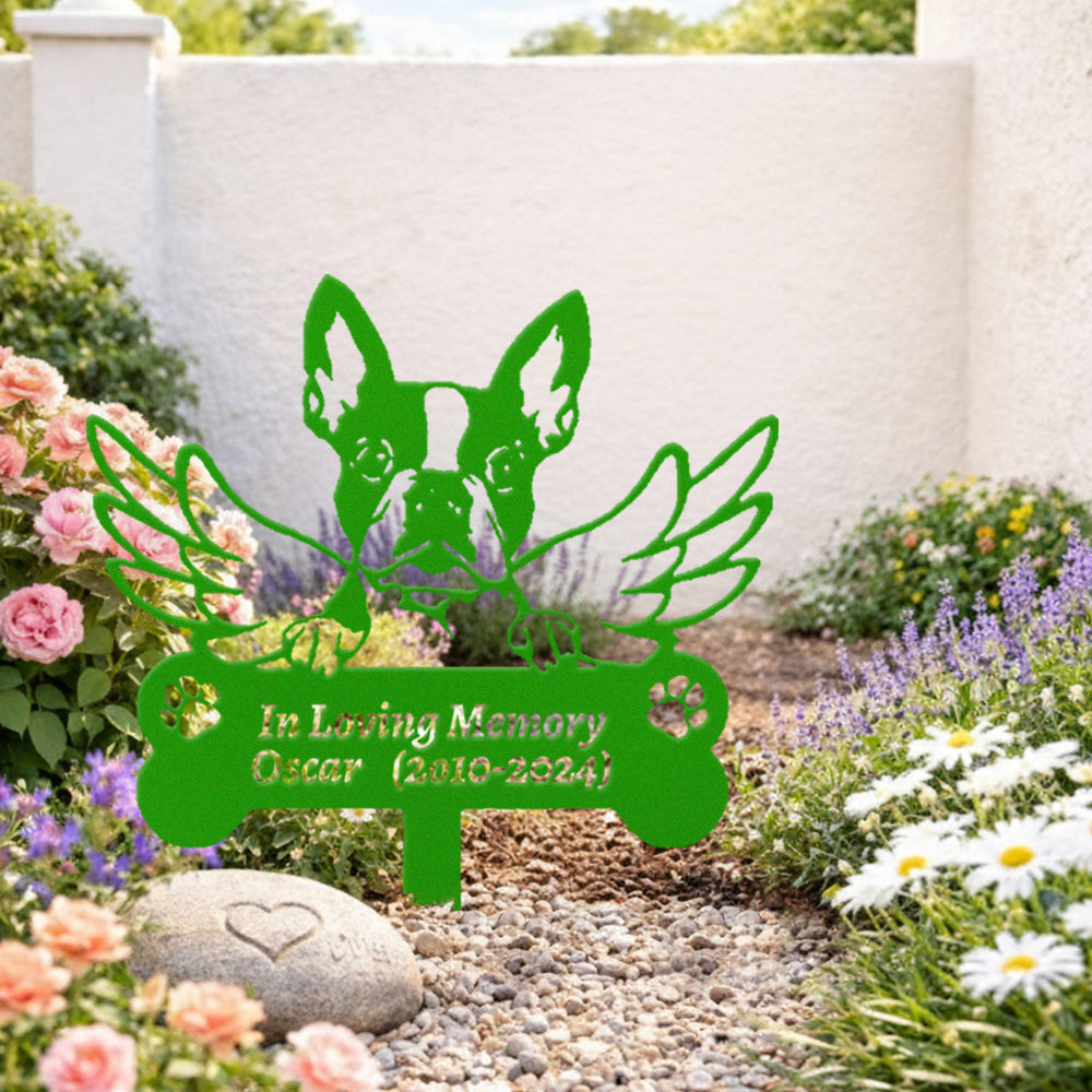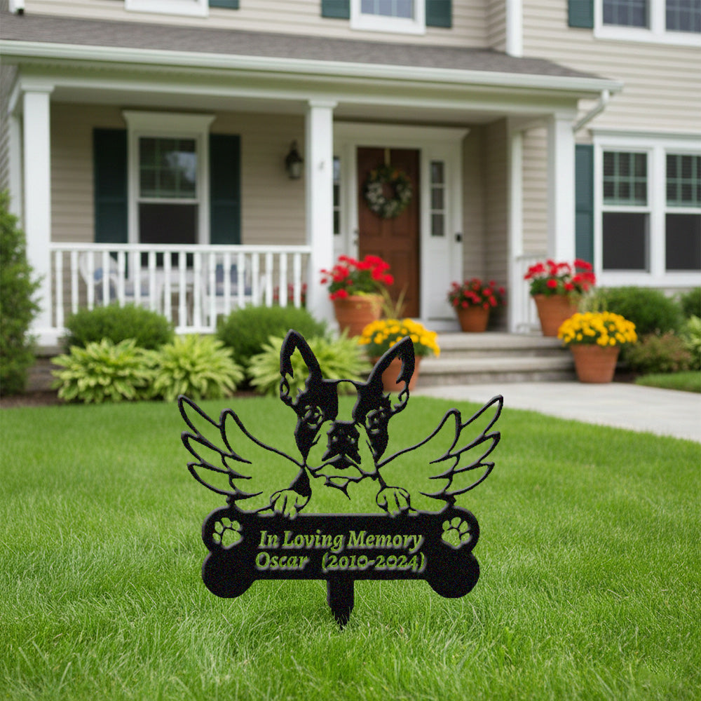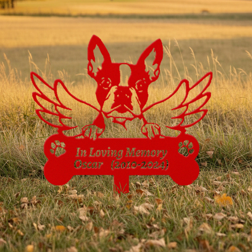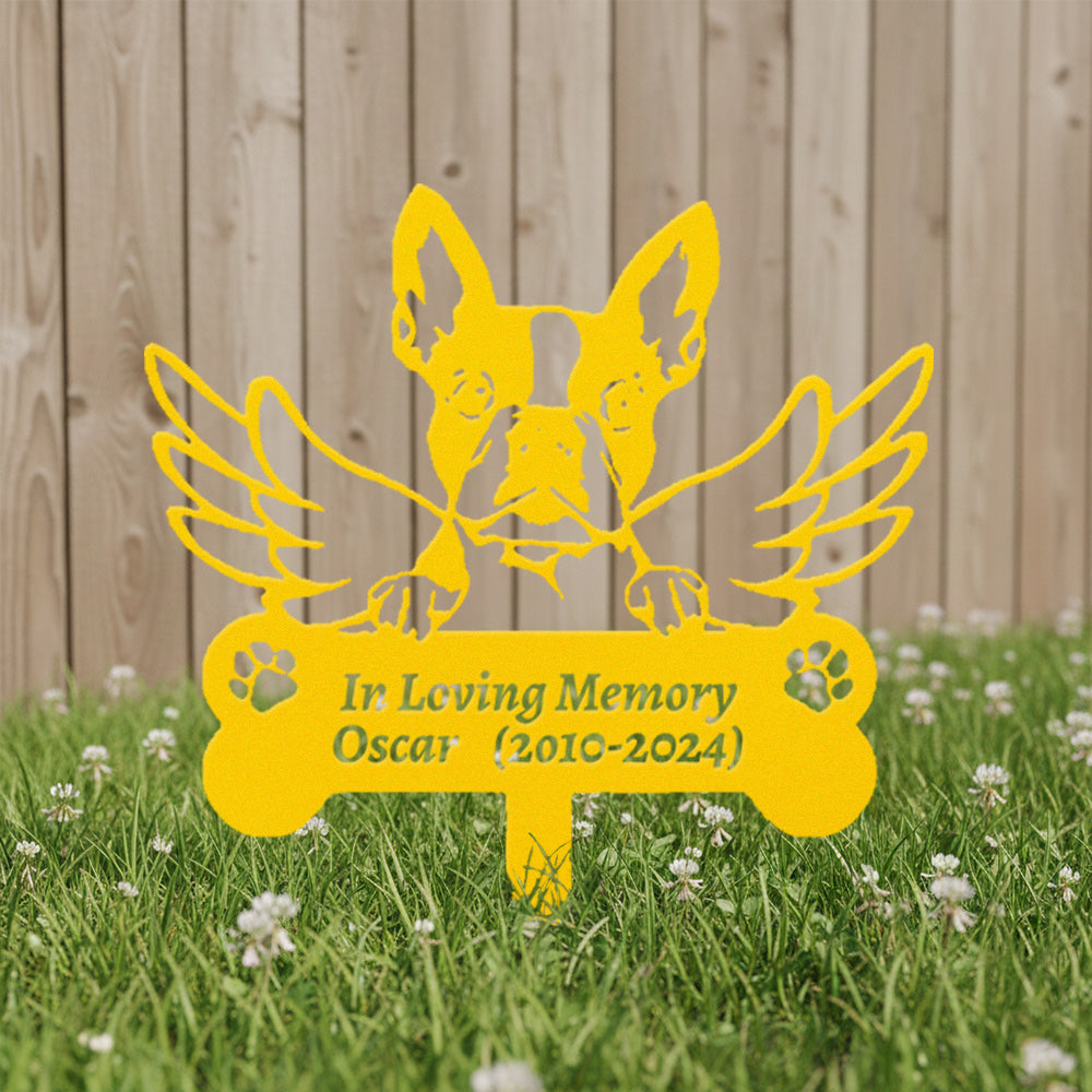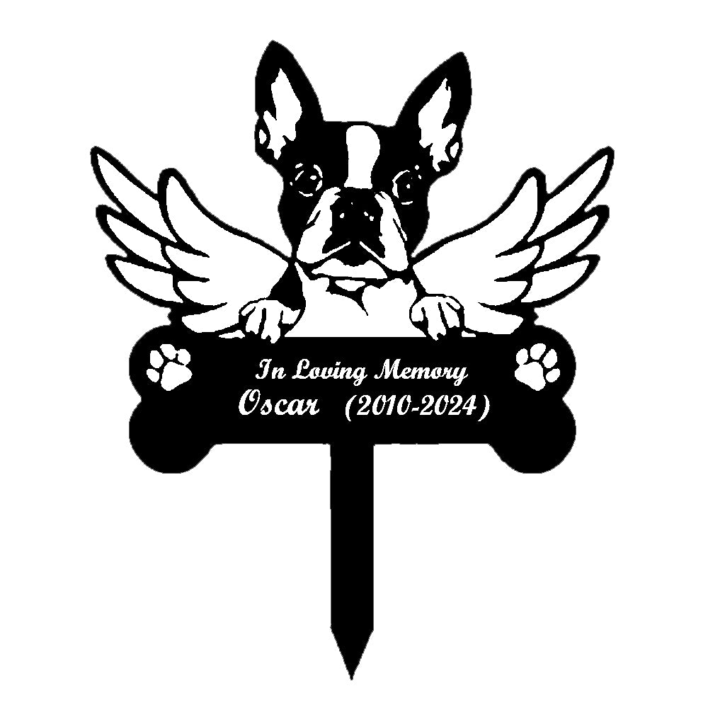 Boston Terrier Individueller Gedenkpfahl mit Flügeln