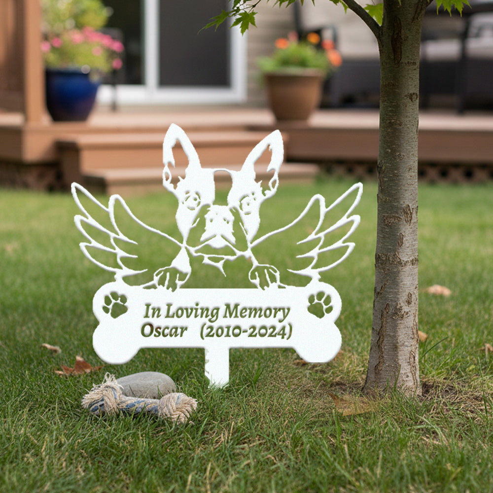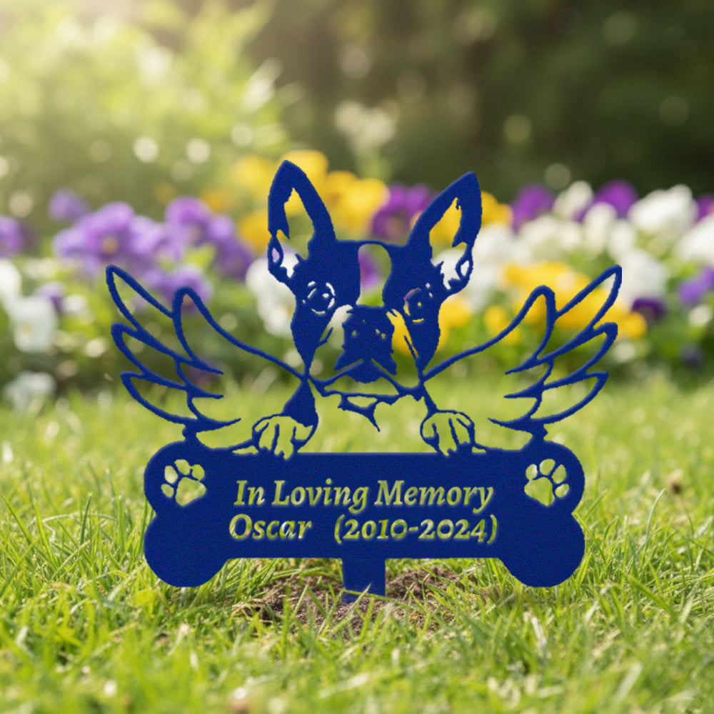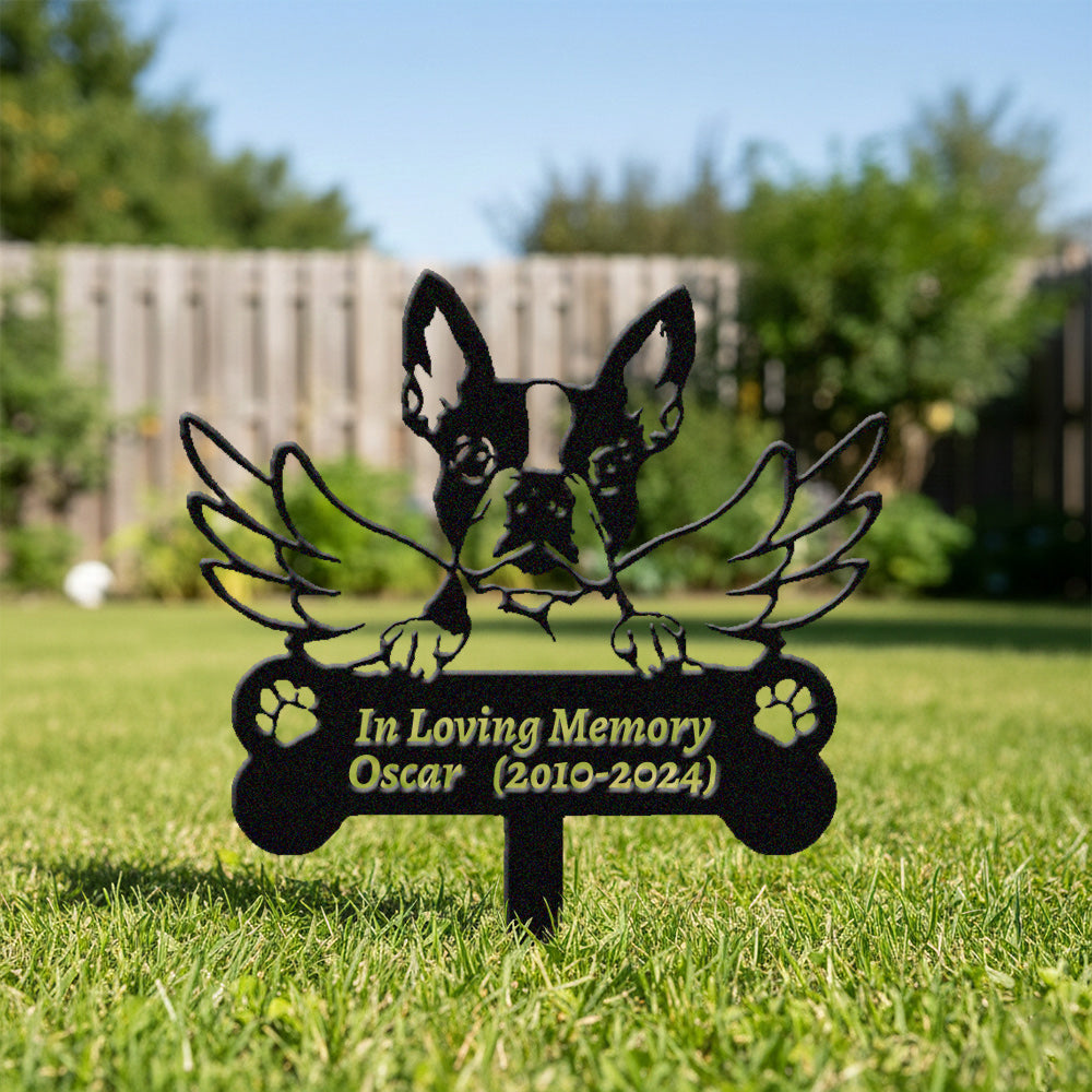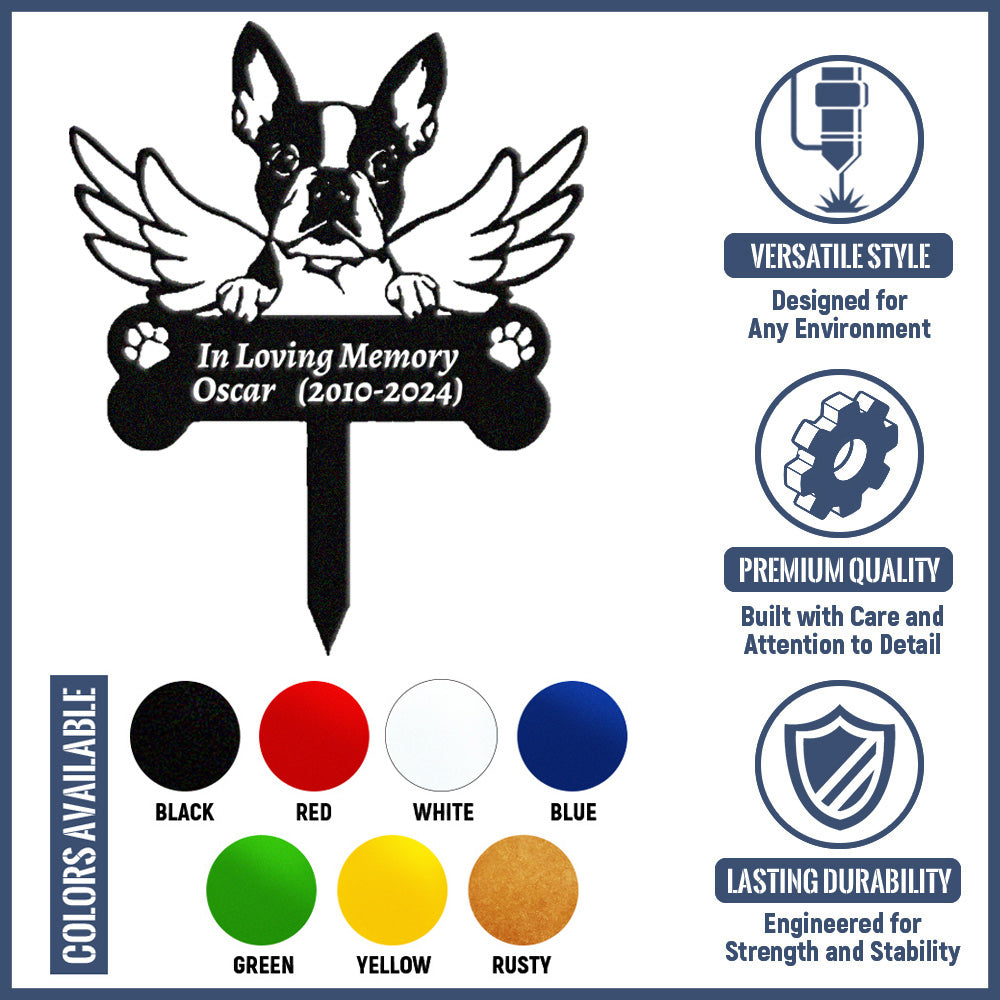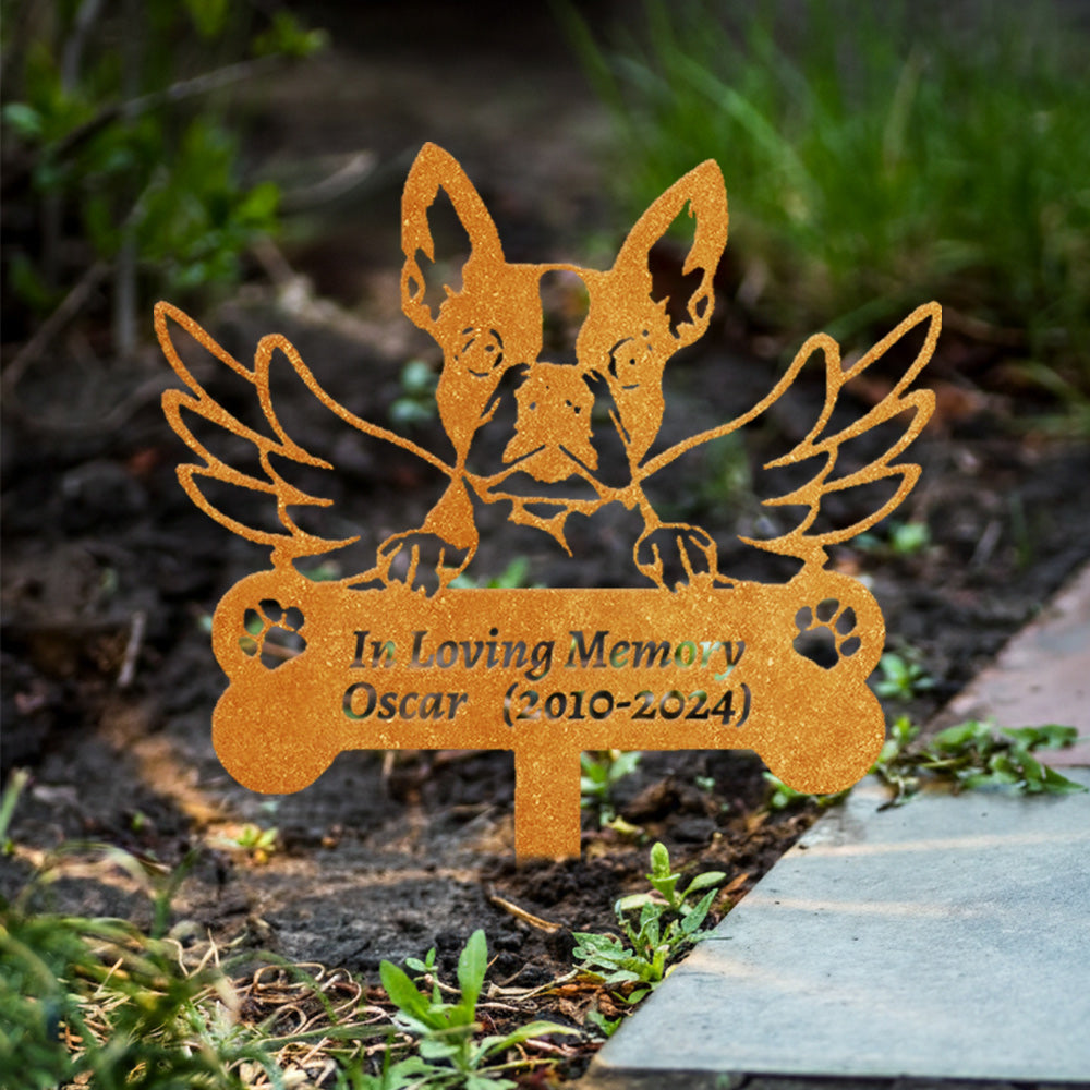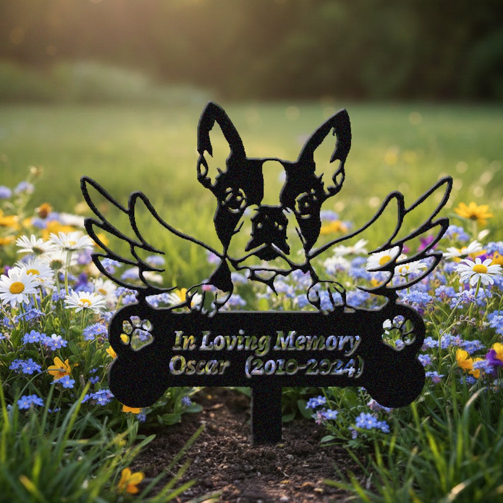 Boston Terrier Individueller Gedenkpfahl mit Flügeln