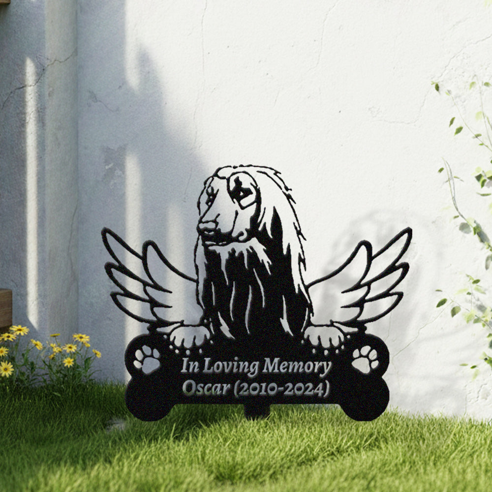Afghanischer Windhund Individueller Gedenkpfahl mit Flügeln