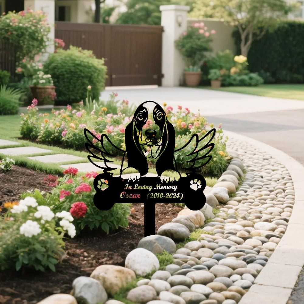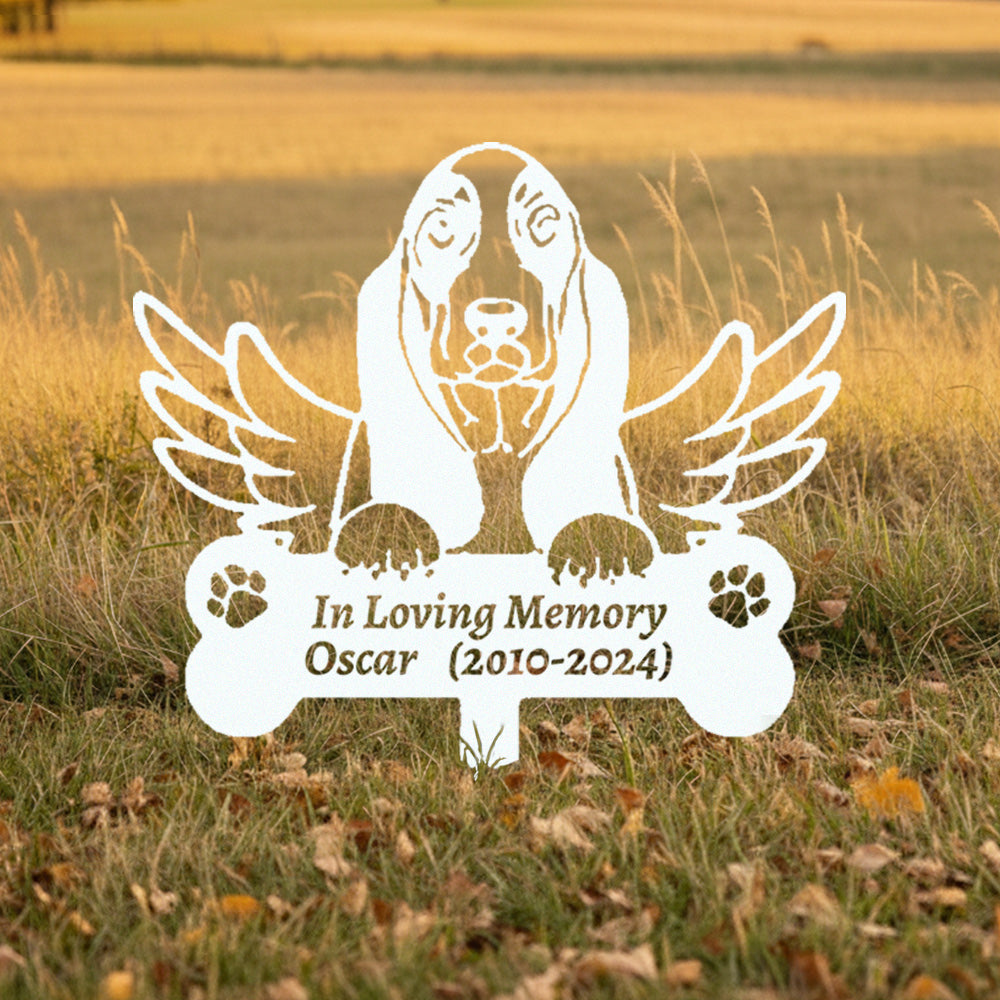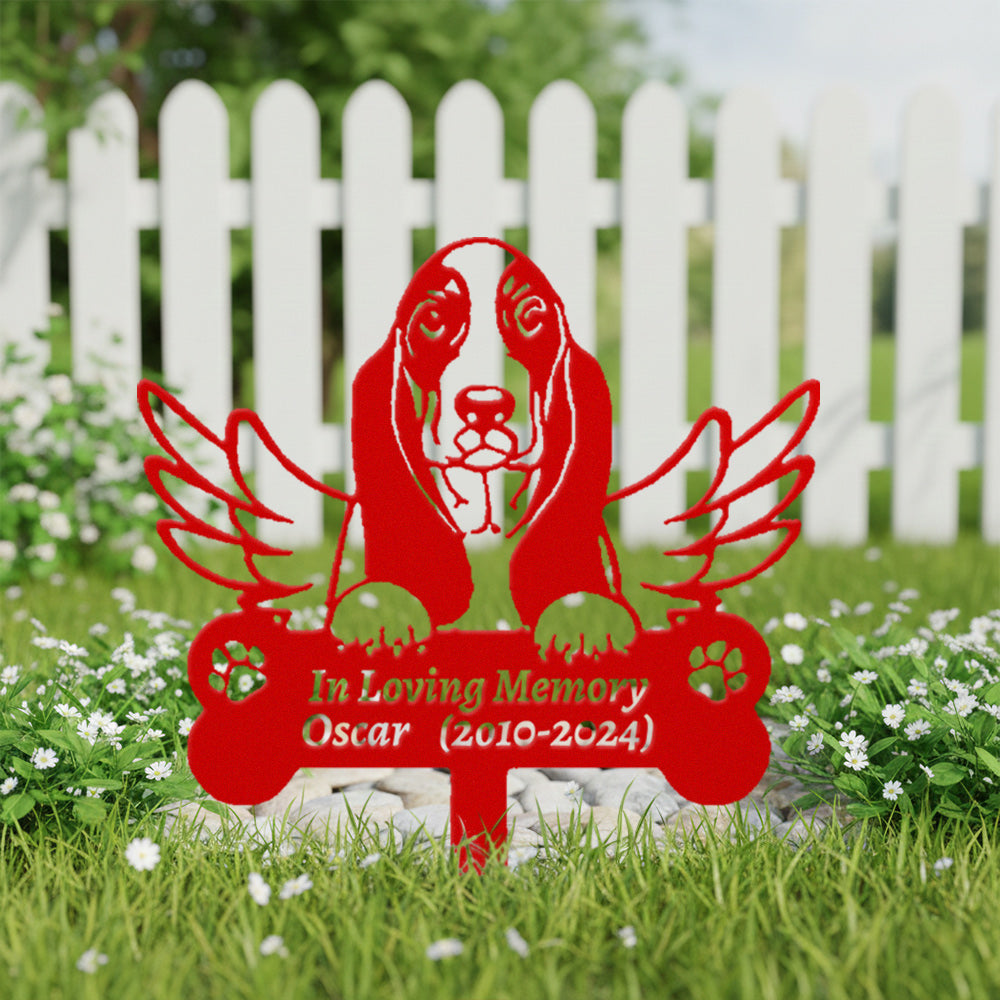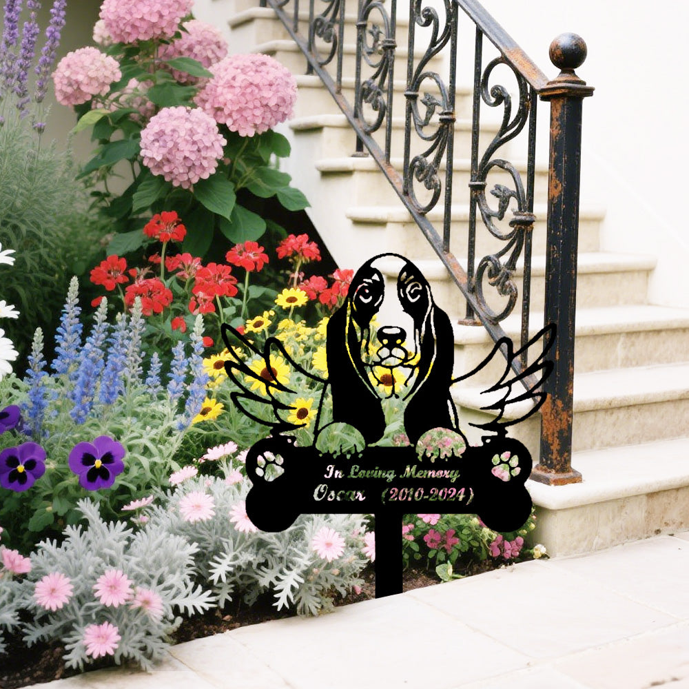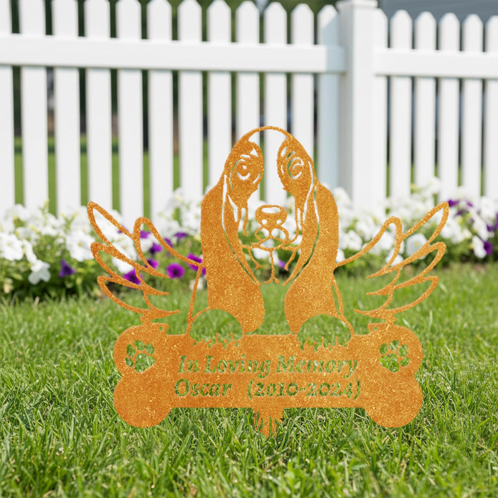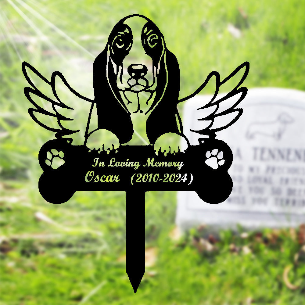 Basset Hound Individueller Gedenkpfahl mit Flügeln
