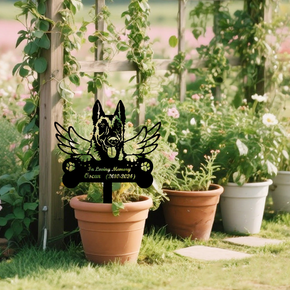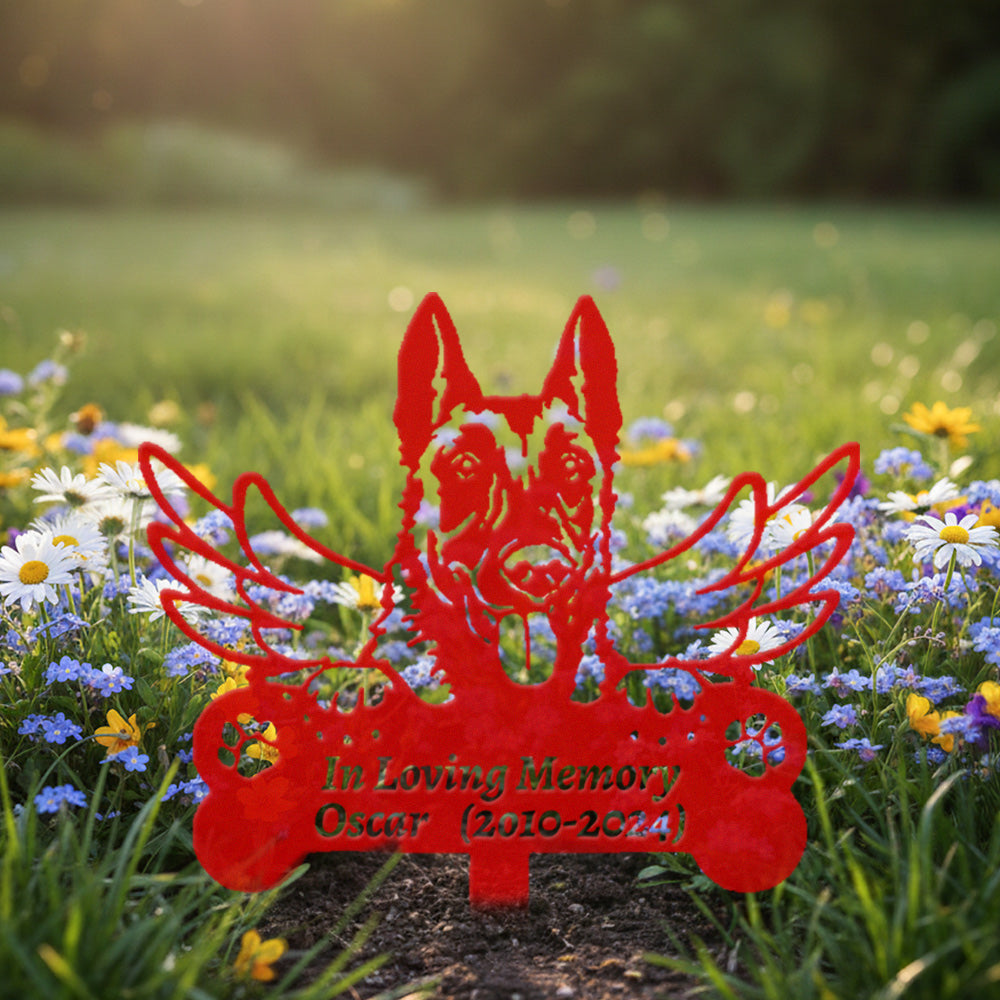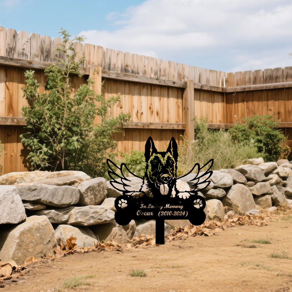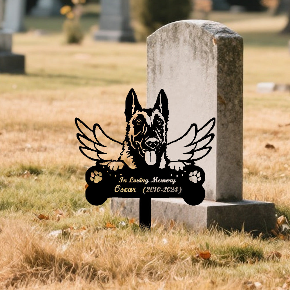 Belgian Malinois Individueller Gedenkpfahl mit Flügeln