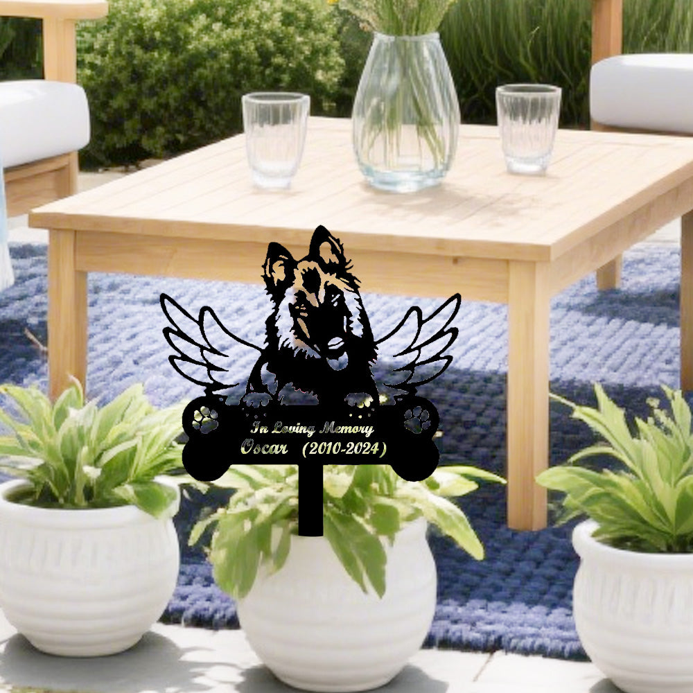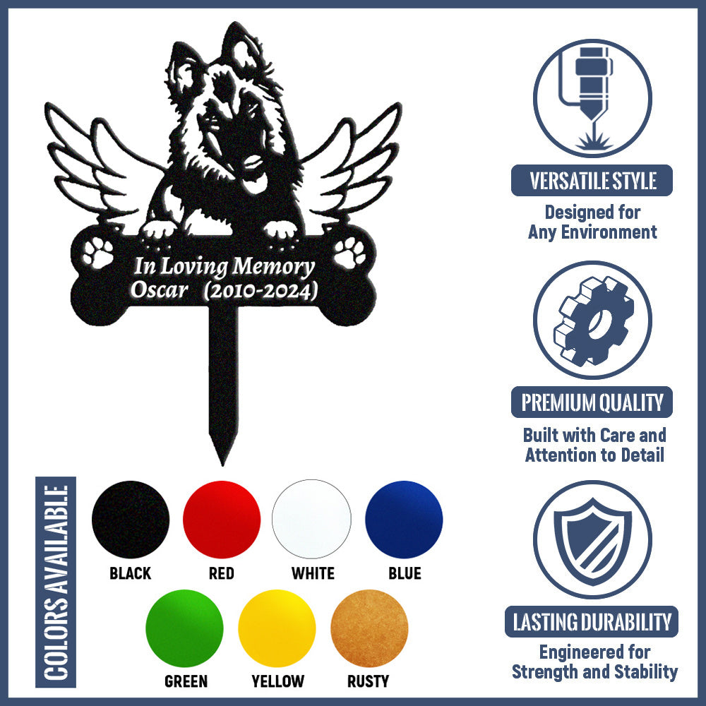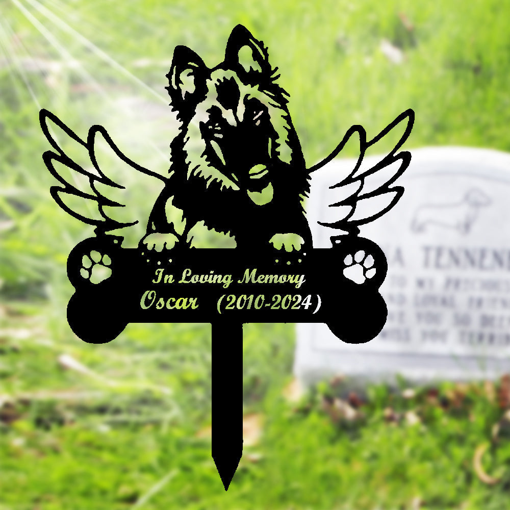 Belgischer Schäferhund Individueller Gedenkpfahl mit Flügeln